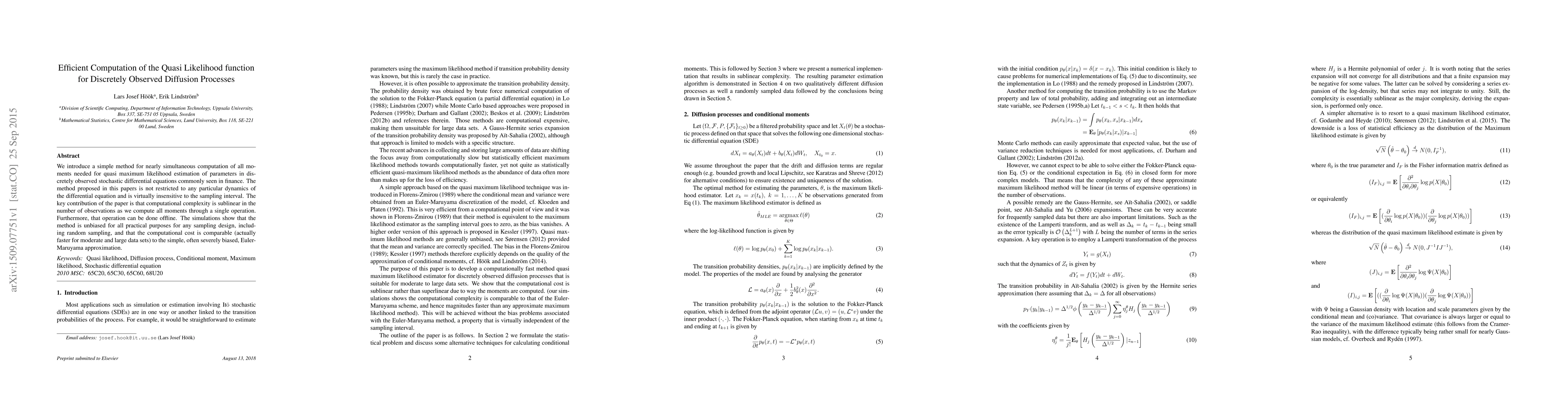 We introduce a simple method for nearly simultaneous computation of all moments needed for quasi maximum likelihood estimation of parameters in discretely observed stochastic differential equations commonly seen in finance. The method proposed in this papers is not restricted to any particular dynamics of the differential equation and is virtually insensitive to the sampling interval. The key contribution of the paper is that computational complexity is sublinear in the number of observations as we compute all moments through a single operation. Furthermore, that operation can be done offline. The simulations show that the method is unbiased for all practical purposes for any sampling design, including random sampling, and that the computational cost is comparable (actually faster for moderate and large data sets) to the simple, often severely biased, Euler-Maruyama approximation.