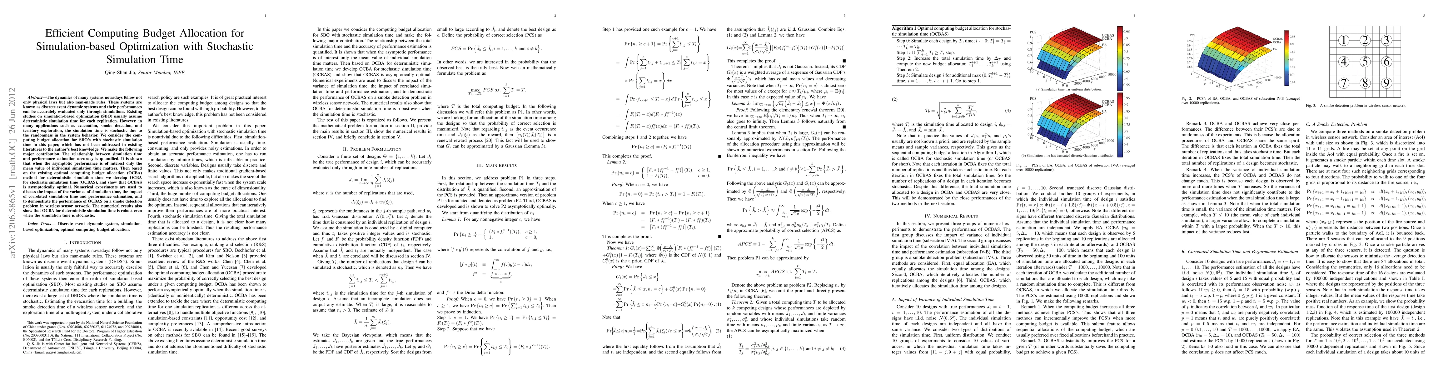 This paper develops an optimal computing budget allocation method (OCBAS) for simulation-based optimization (SBO) with stochastic simulation time, addressing a gap in existing literature. It quantifies the relationship between simulation time and performance estimation accuracy, showing that only the mean simulation time matters for asymptotic performance.