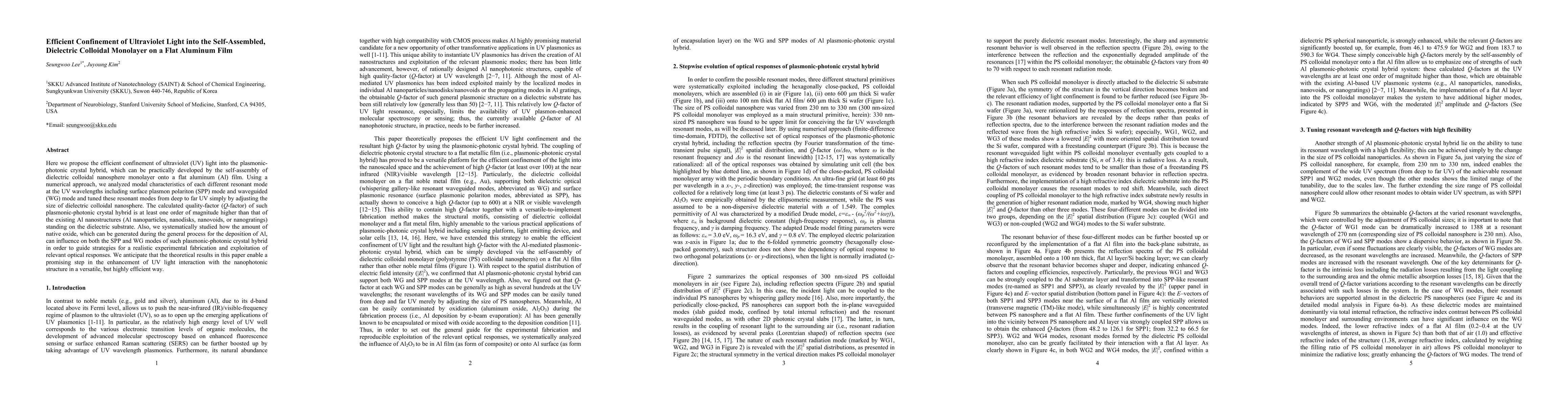 This paper proposes an efficient method for confining ultraviolet light using a self-assembled dielectric colloidal monolayer on a flat aluminum film, achieving a significantly higher Q-factor than existing Al nanostructures. The study also investigates the influence of native oxide on surface plasmon polariton and waveguided modes to guide practical fabrication and application.