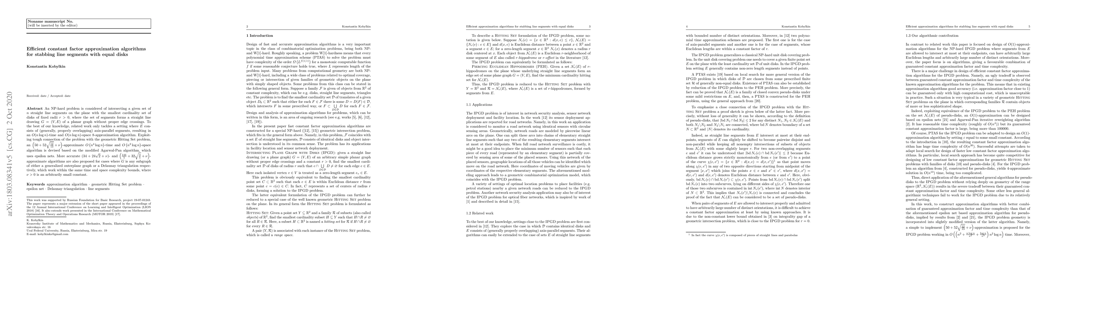 A new algorithm is proposed to efficiently find the smallest set of disks that cover a line segment with equal radii, improving upon existing $O(n extlog n)$-approximation algorithms for axis-parallel segments.