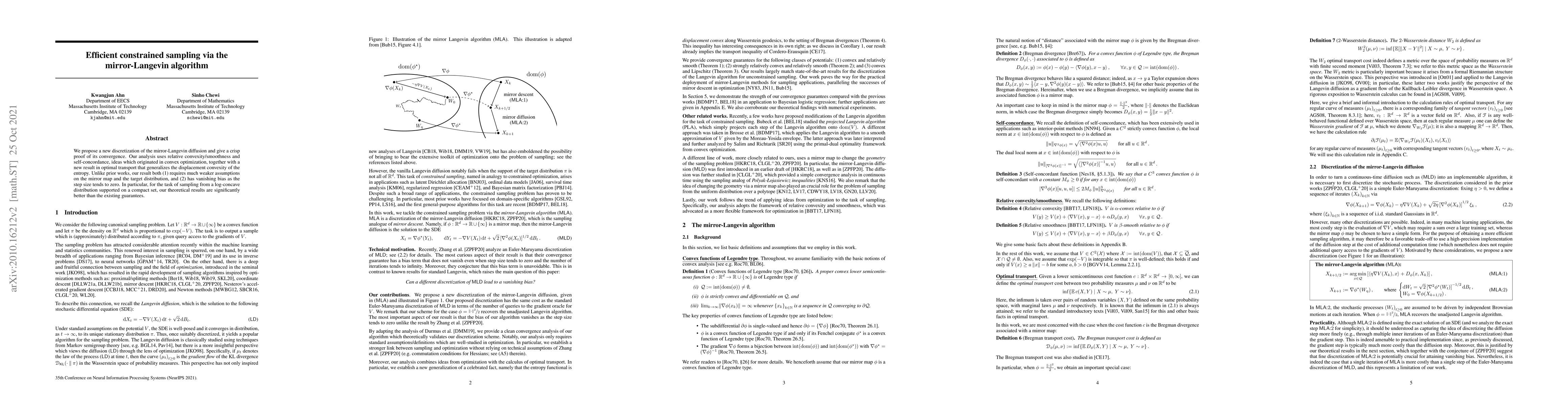 The paper proposes a new method for constrained sampling using the mirror-Langevin algorithm, requiring weaker assumptions on the target distribution and having vanishing bias as step size approaches zero.