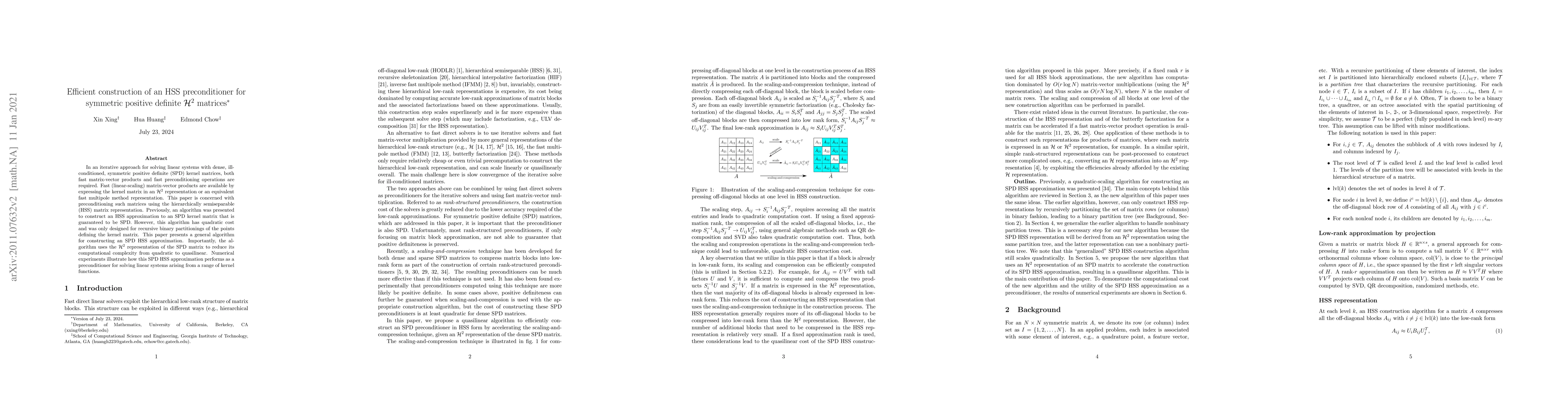 This research is significant as it provides an efficient method for constructing SPD HSS approximations, which are crucial for fast preconditioning in iterative solvers for ill-conditioned, SPD kernel matrices. The method's quasilinear complexity makes it suitable for large-scale problems, with potential applications in Gaussian processes, numerical solutions of PDEs, and molecular dynamics simulations.