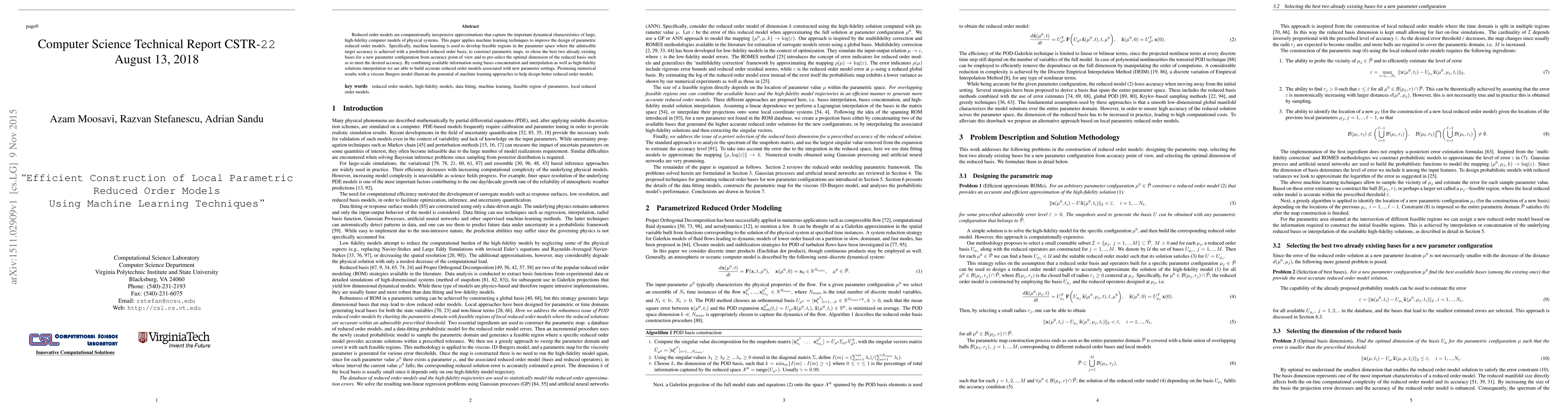 This paper utilizes machine learning to enhance the construction of parametric reduced order models, focusing on developing feasible regions, constructing parametric maps, and optimizing the reduced basis dimension. The approach combines information from existing bases and high-fidelity solutions to build accurate models for new parameter settings, demonstrated effectively with a viscous Burgers model.