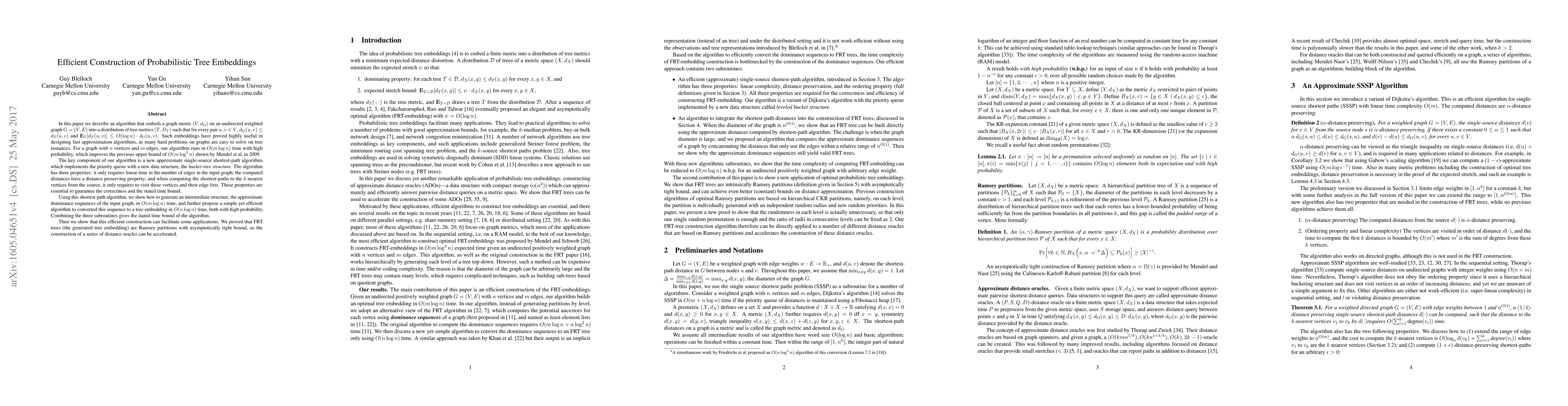 In this paper we describe an algorithm that embeds a graph metric $(V,d_G)$ on an undirected weighted graph $G=(V,E)$ into a distribution of tree metrics $(T,D_T)$ such that for every pair $u,v\in V$, $d_G(u,v)\leq d_T(u,v)$ and ${\bf{E}}_{T}[d_T(u,v)]\leq O(\log n)\cdot d_G(u,v)$. Such embeddings have proved highly useful in designing fast approximation algorithms, as many hard problems on graphs are easy to solve on tree instances. For a graph with $n$ vertices and $m$ edges, our algorithm runs in $O(m\log n)$ time with high probability, which improves the previous upper bound of $O(m\log^3 n)$ shown by Mendel et al.\,in 2009. The key component of our algorithm is a new approximate single-source shortest-path algorithm, which implements the priority queue with a new data structure, the "bucket-tree structure". The algorithm has three properties: it only requires linear time in the number of edges in the input graph; the computed distances have a distance preserving property; and when computing the shortest-paths to the $k$-nearest vertices from the source, it only requires to visit these vertices and their edge lists. These properties are essential to guarantee the correctness and the stated time bound. Using this shortest-path algorithm, we show how to generate an intermediate structure, the approximate dominance sequences of the input graph, in $O(m \log n)$ time, and further propose a simple yet efficient algorithm to converted this sequence to a tree embedding in $O(n\log n)$ time, both with high probability. Combining the three subroutines gives the stated time bound of the algorithm. Then we show that this efficient construction can facilitate some applications. We proved that FRT trees (the generated tree embedding) are Ramsey partitions with asymptotically tight bound, so the construction of a series of distance oracles can be accelerated.