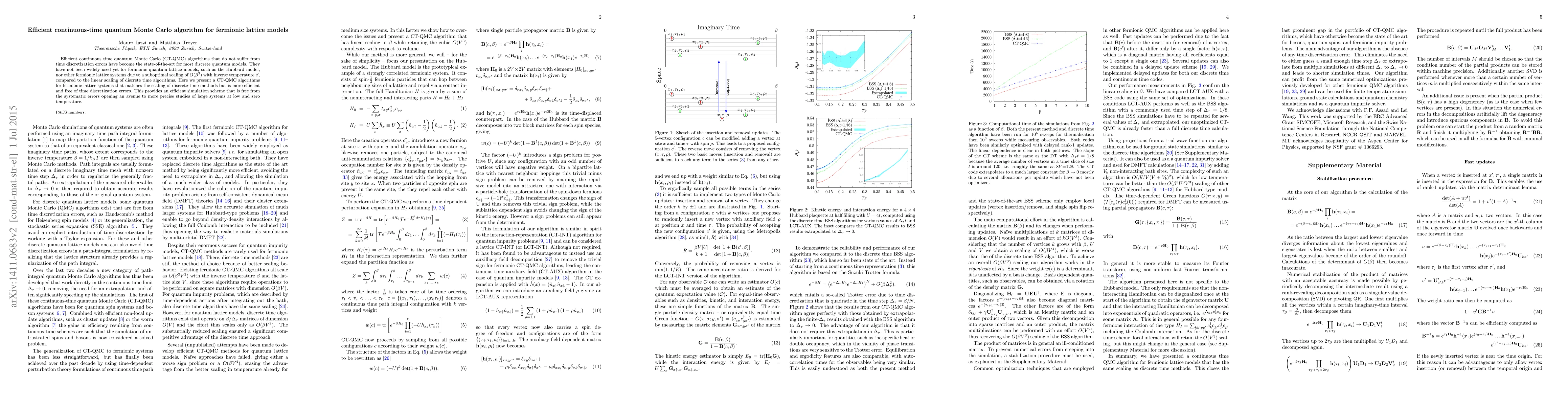 This paper introduces an efficient continuous-time quantum Monte Carlo (CT-QMC) algorithm for fermionic lattice models, overcoming the suboptimal scaling of previous methods and achieving linear scaling with inverse temperature, thus providing a more precise simulation tool for studying large systems at low temperatures.