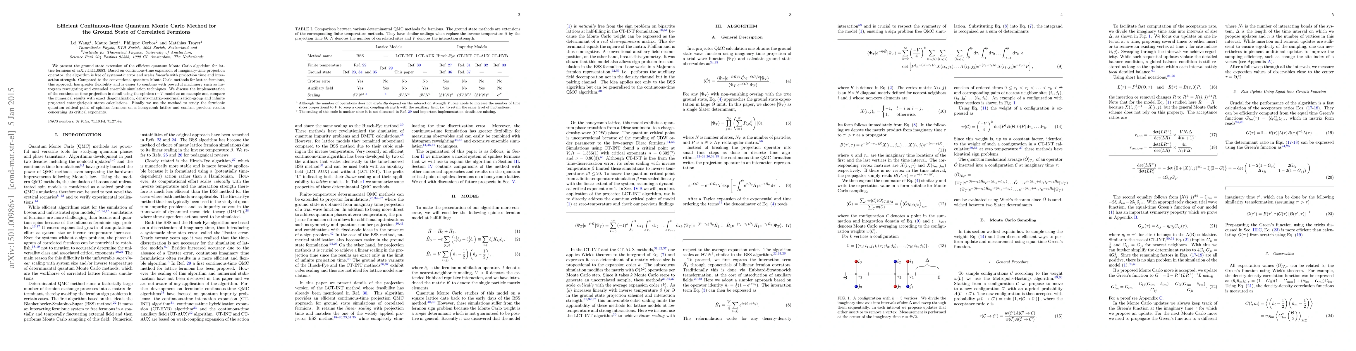 This paper introduces an efficient continuous-time quantum Monte Carlo method for determining the ground state of correlated fermions, which scales linearly with projection time and interaction strength. The method is demonstrated using the spinless $t-V$ model and validated against exact calculations, showing its effectiveness for studying quantum critical points.