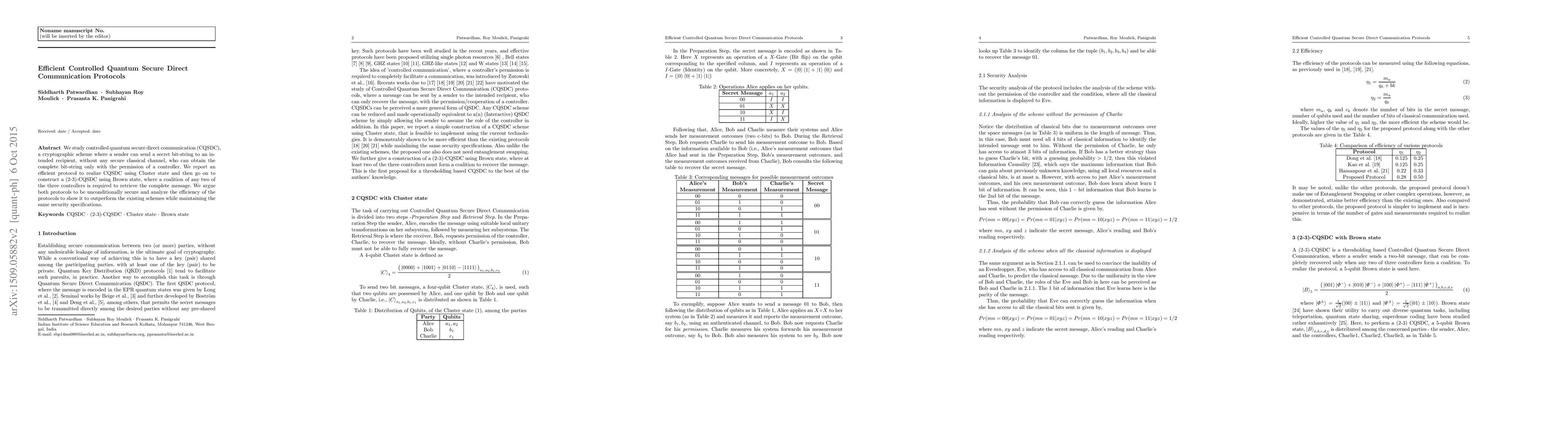 This paper proposes efficient protocols for controlled quantum secure direct communication (CQSDC) using Cluster and Brown states, enabling a sender to transmit a secret bit-string to a recipient with controller permission, and demonstrates that these protocols outperform existing schemes while maintaining unconditional security.