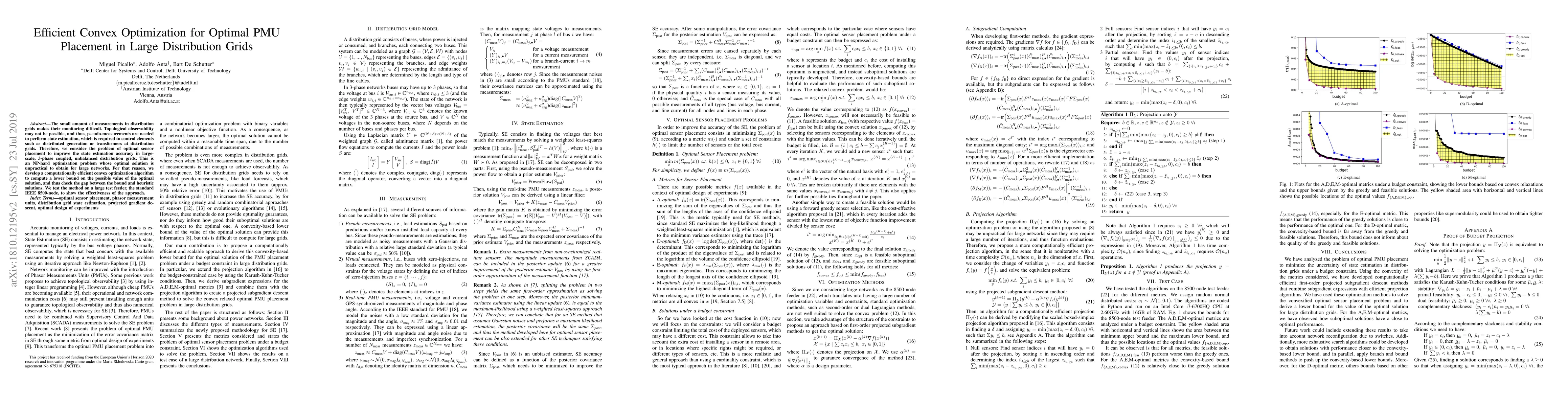 This paper proposes a convex optimization algorithm to determine optimal placement of Phasor Measurement Units (PMUs) in large distribution grids to improve state estimation accuracy. The method provides a computationally efficient lower bound for the optimal solution, demonstrating its effectiveness on the IEEE 8500-node test feeder.