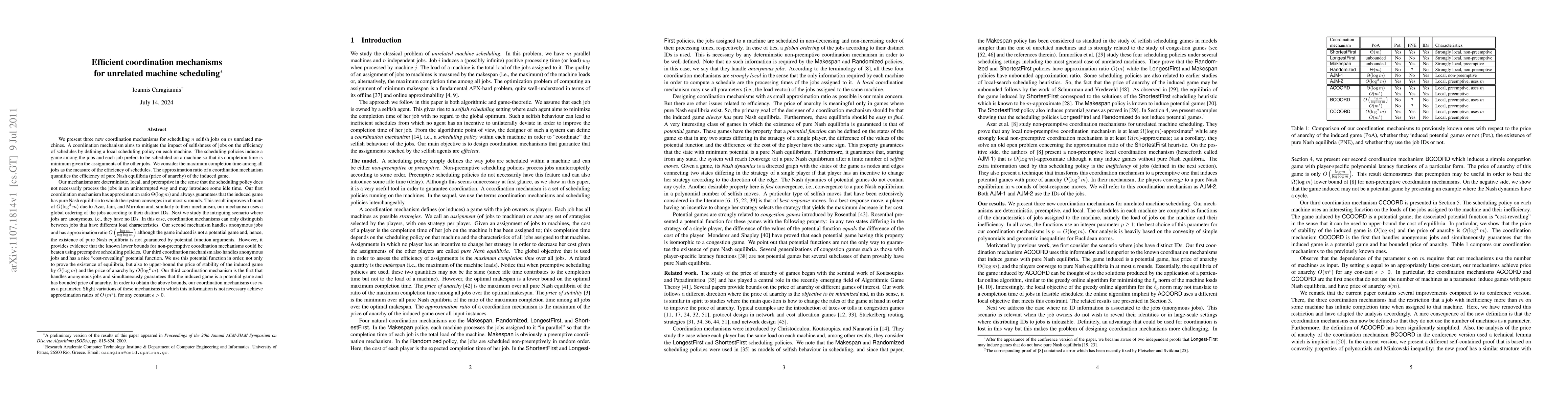 Researchers develop three efficient coordination mechanisms for scheduling unrelated machines with selfish jobs, achieving approximation ratios of O(log m), O(log^2 m) and O(log^2m) respectively, which improve previous bounds.