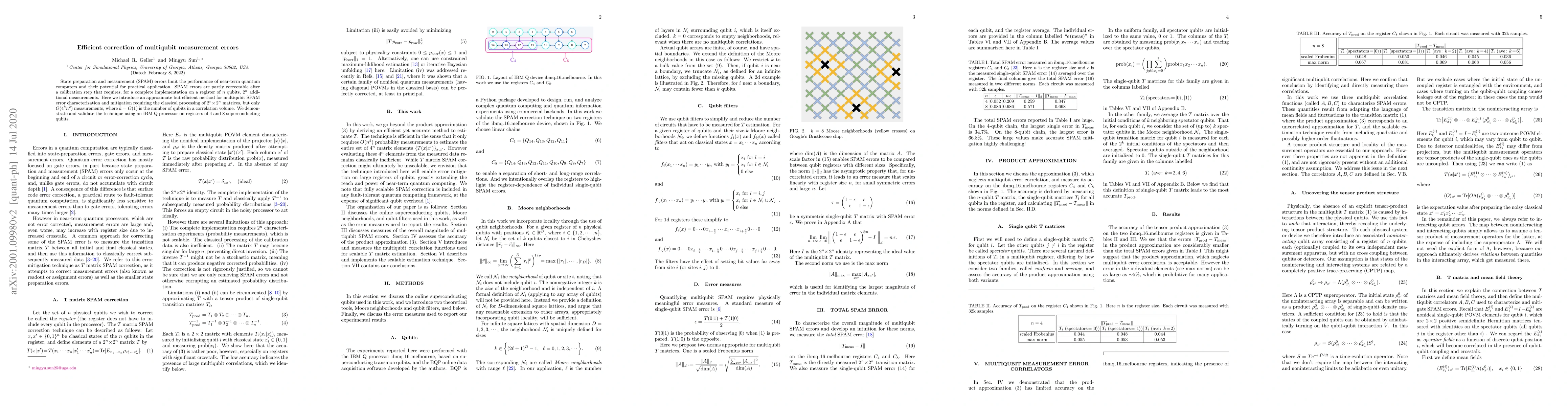 This paper proposes an efficient method for correcting multiqubit measurement errors in near-term quantum computers, requiring only $O(4^k n^2)$ measurements instead of the $2^n$ needed for complete calibration, where $k$ is the number of qubits in a correlation volume. The technique was validated on an IBM Q processor with 4 and 8 superconducting qubits.