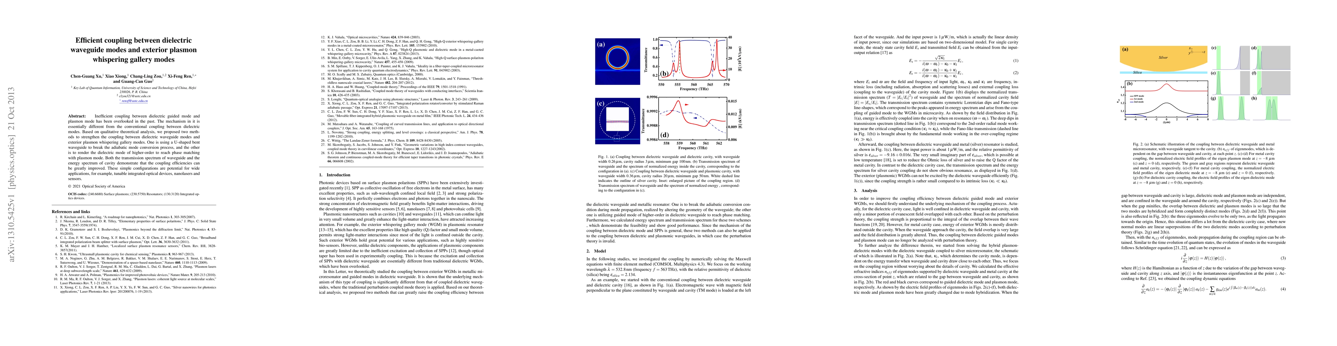 The paper presents novel methods to enhance the coupling efficiency between dielectric waveguide modes and exterior plasmon WGMs in metallic cavities, based on breaking adiabatic mode conversion and phase matching higher-order dielectric modes with plasmon modes.