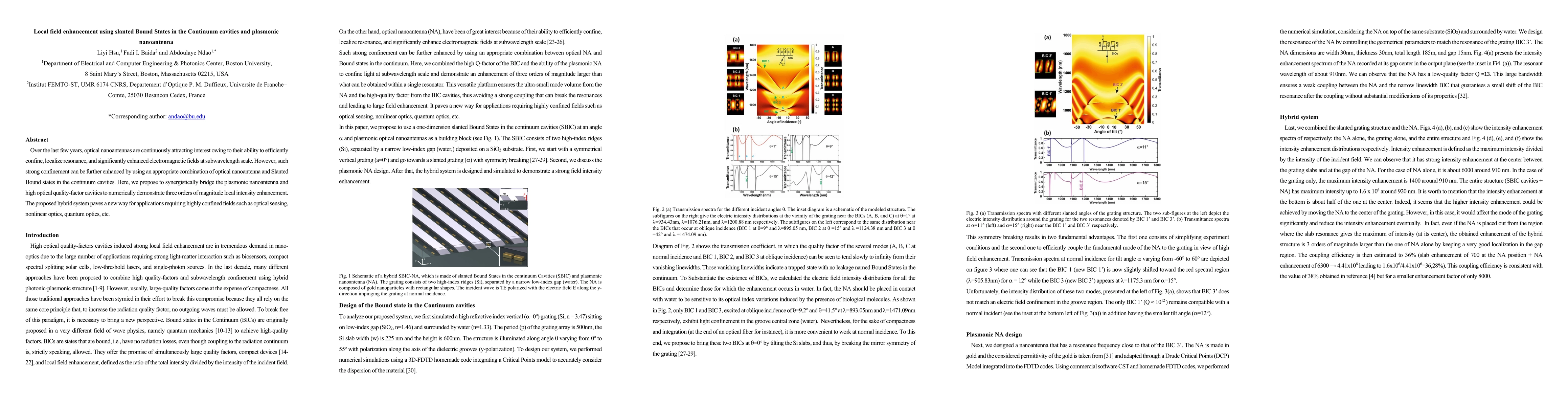 Researchers propose a hybrid system combining plasmonic nanoantennas with slanted bound states in continuum cavities to achieve three orders of magnitude local intensity enhancement, enabling applications like optical sensing and nonlinear optics.