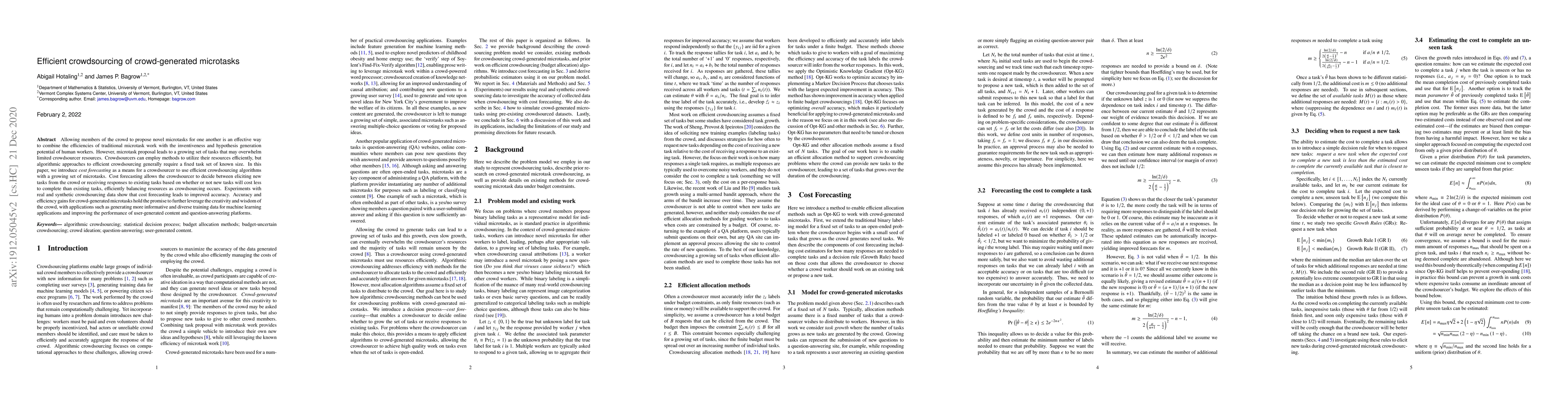 This paper proposes *cost forecasting* to efficiently crowdsource crowd-generated microtasks, balancing resource allocation between new task proposals and existing task responses. Experiments demonstrate improved accuracy and efficiency, promising enhanced creativity and data diversity for machine learning and content platforms.