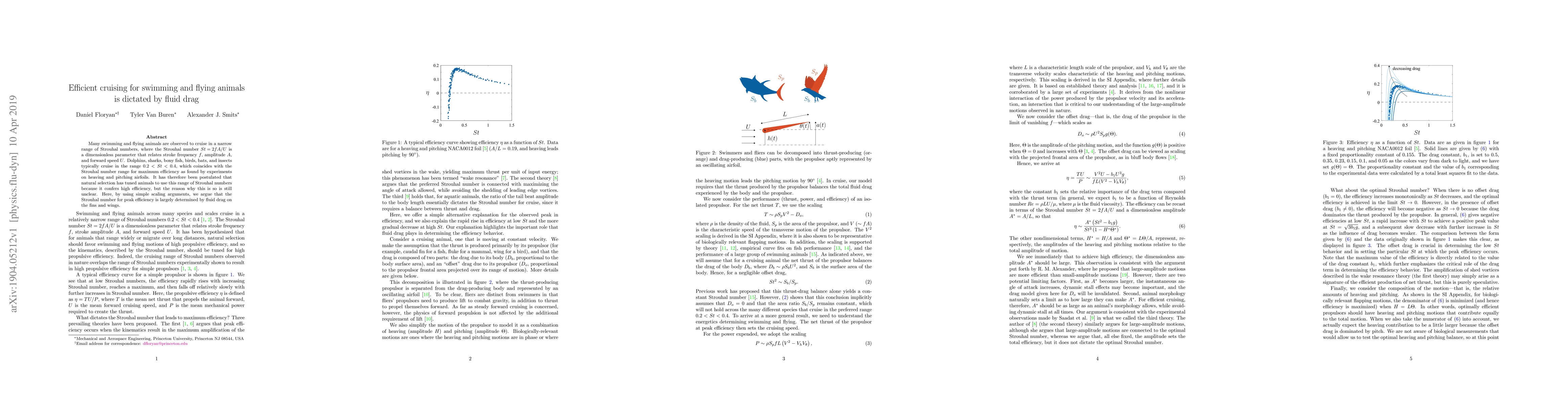 Swimming and flying animals optimize their cruising efficiency by using a narrow Strouhal number range, likely due to fluid drag on their fins and wings, rather than natural selection tuning.