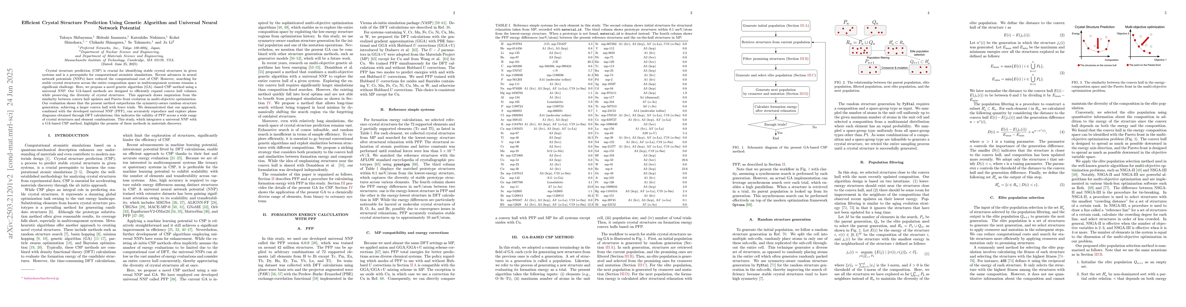 The novelty of this work lies in the integration of a universal NNP with a GA-based CSP method, inspired by the similarity between convex hull updates and Pareto front evolution in multi-objective optimization, to efficiently discover stable crystal structures in multicomponent systems.