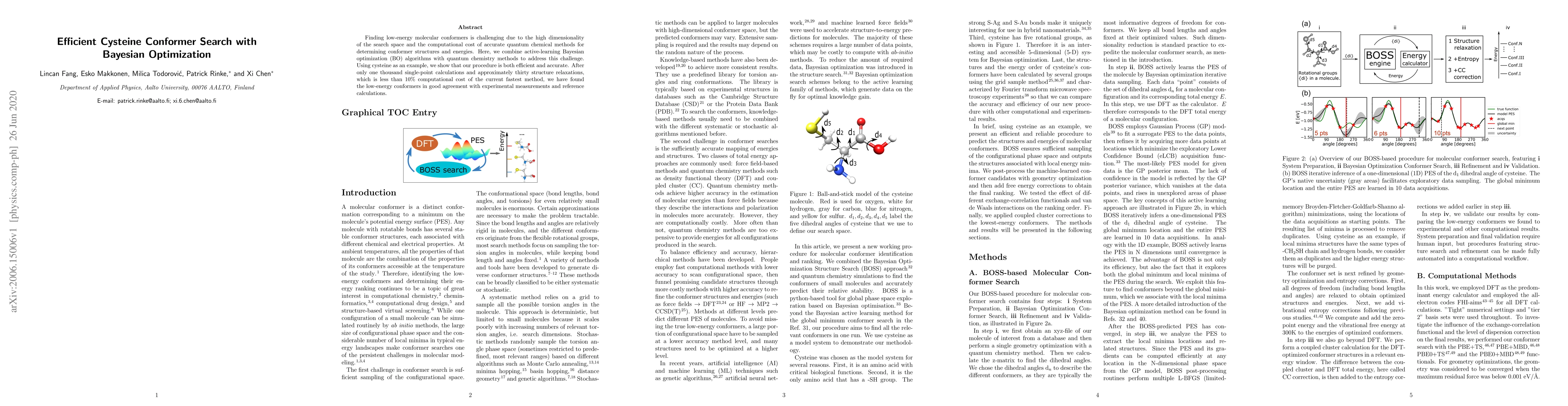 Researchers developed a method using Bayesian optimization to efficiently find low-energy molecular conformers of cysteine, achieving accuracy in 1,000 calculations and 30 structure relaxations.