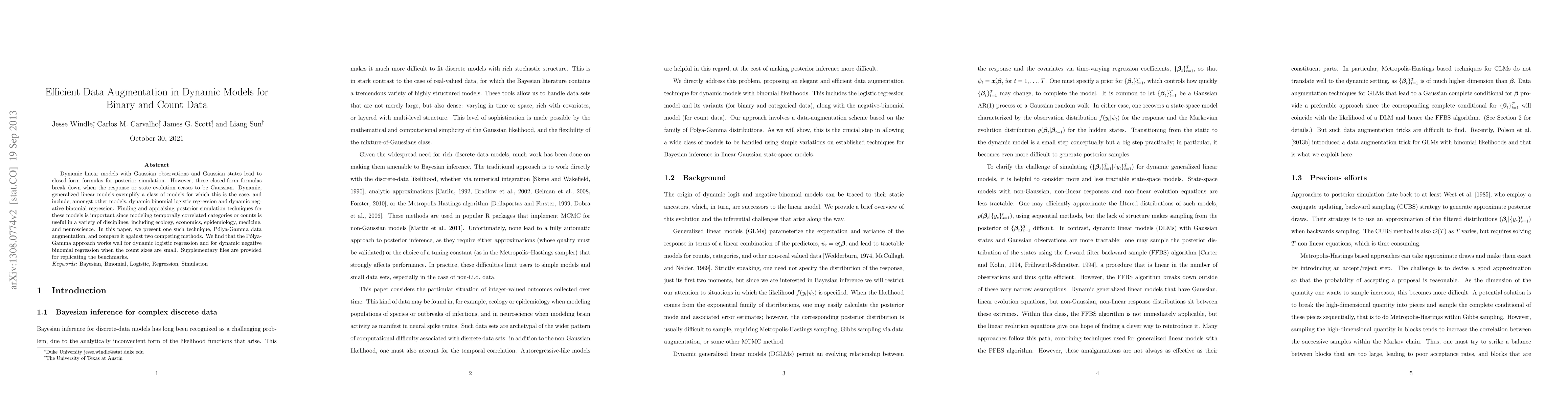 Researchers developed a data augmentation technique called Polya-Gamma to improve dynamic models for binary and count data. The method performed well for certain models, particularly when dealing with small count sizes.