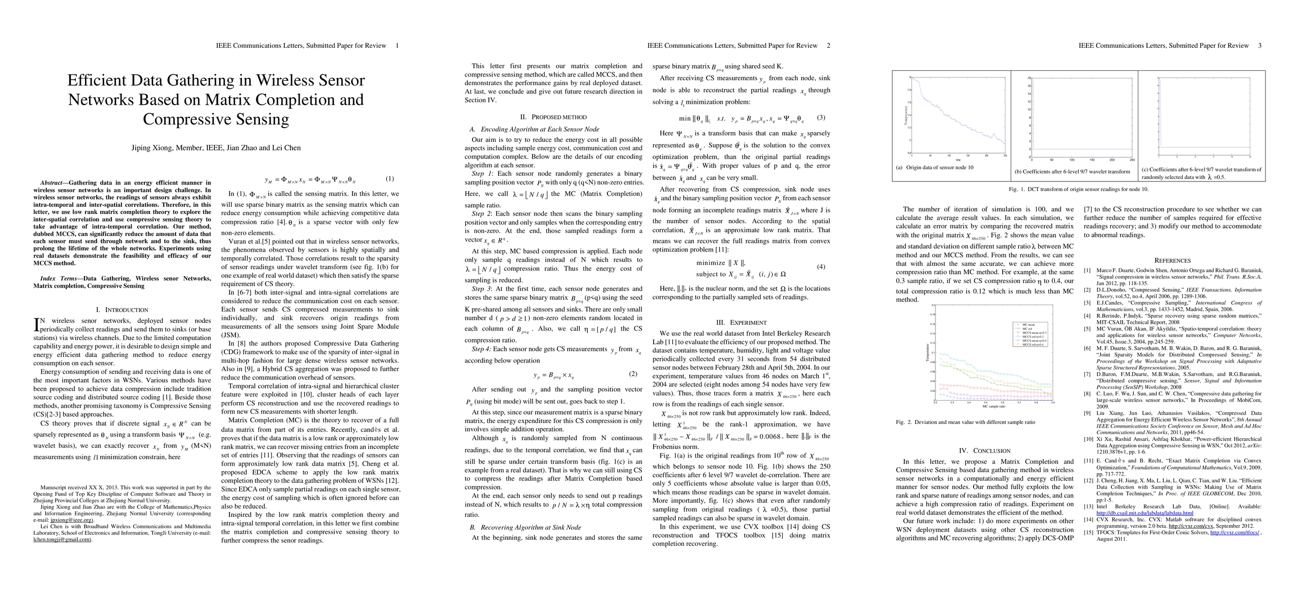 This paper proposes MCCS, a method combining matrix completion and compressive sensing to efficiently gather data in wireless sensor networks. By leveraging inter-spatial and intra-temporal correlations, MCCS reduces the amount of data transmitted, thereby extending network lifetime, as demonstrated by experiments on real datasets.