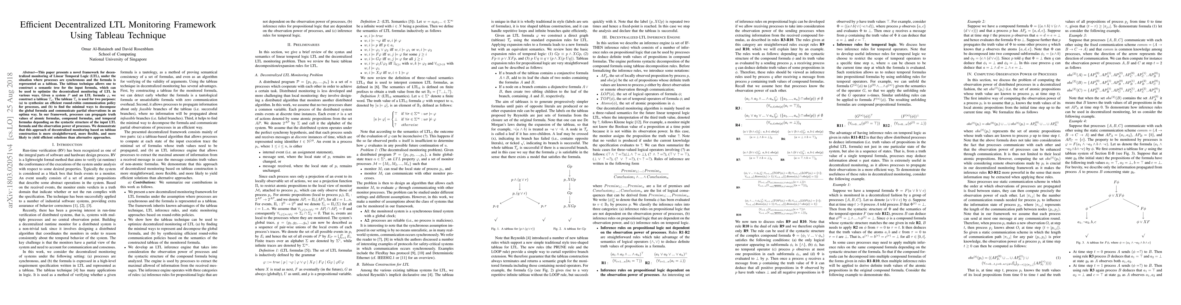 This paper introduces a decentralized LTL monitoring framework using tableau technique, optimizing synchronous peer processes' communication and observation propagation. The tableau construction facilitates efficient round-robin communication and optimal truth value propagation, proving more straightforward and flexible than alternative methods.