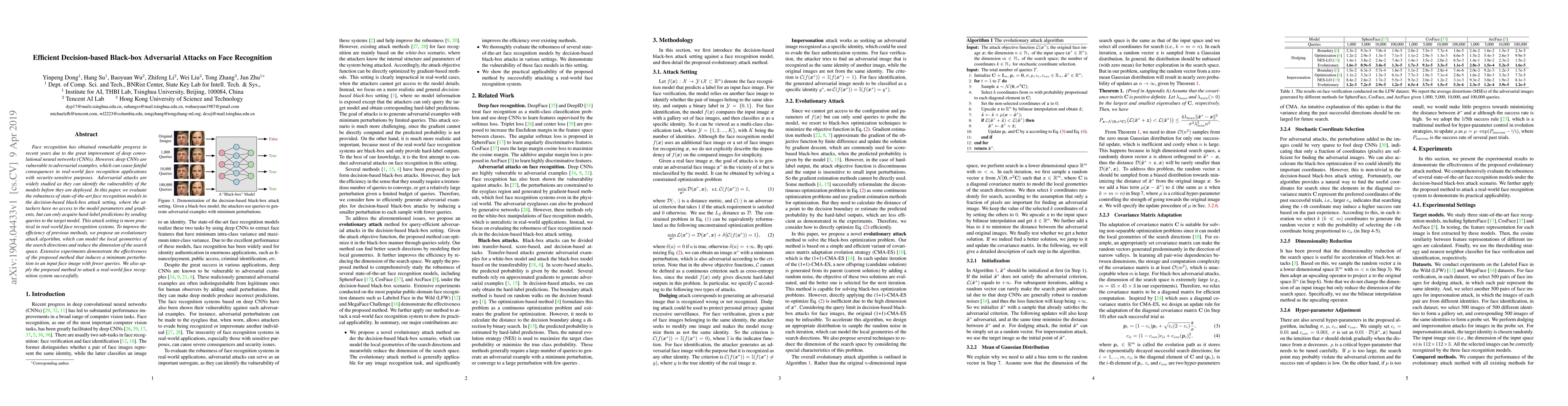 This paper evaluates the robustness of advanced face recognition models against decision-based black-box adversarial attacks, proposing an efficient evolutionary attack algorithm that reduces search space dimensions and requires minimal perturbations and queries. The method successfully demonstrates effectiveness in real-world applications.
