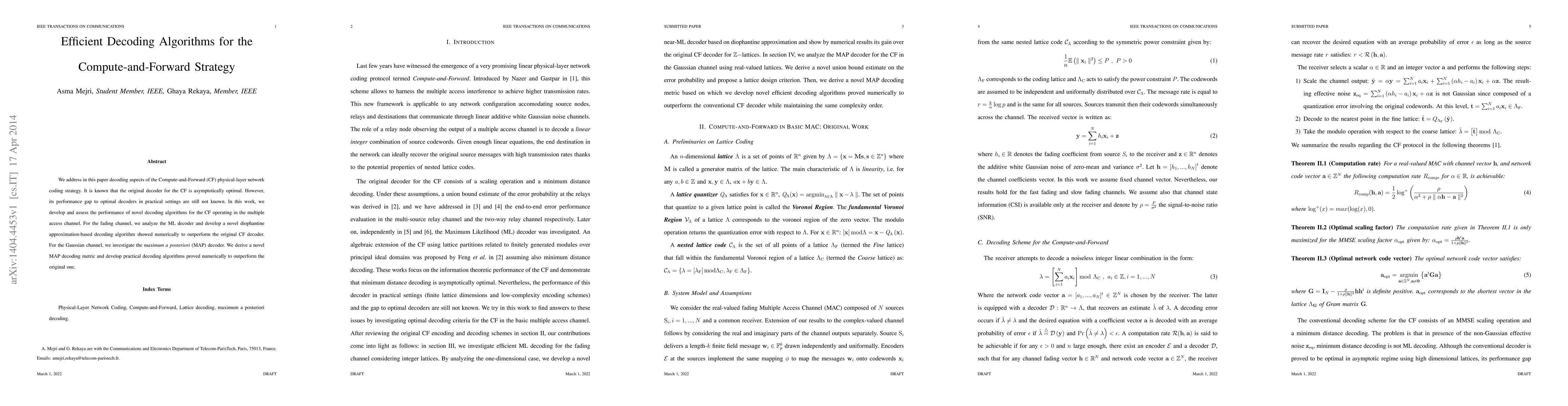 Researchers developed new decoding algorithms for Compute-and-Forward strategy, outperforming original decoders in both fading and Gaussian channels.