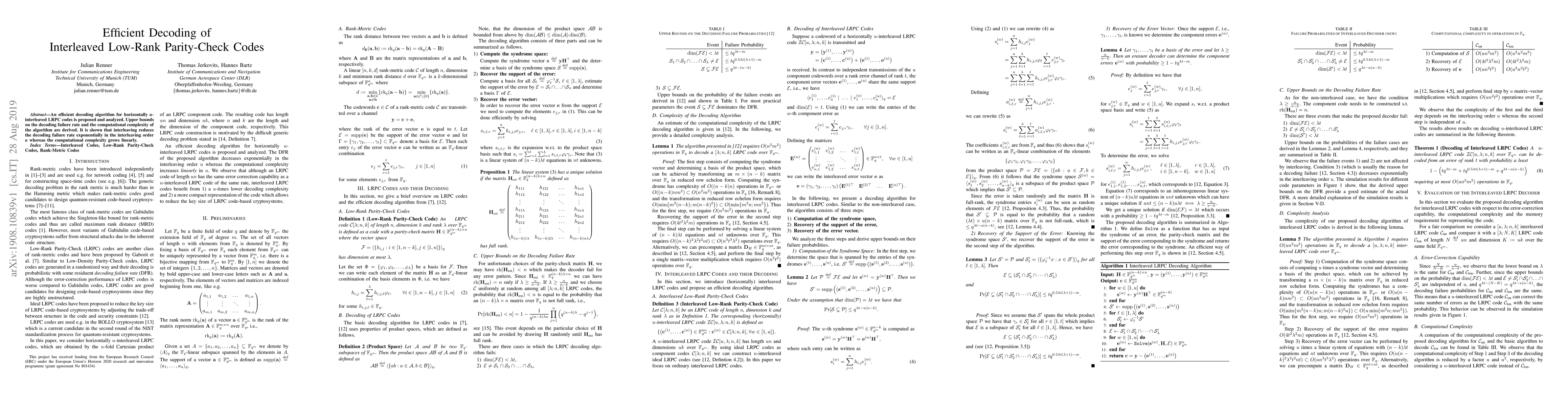A new decoding algorithm for a specific type of error-correcting code is proposed, which can efficiently decode the code with a low failure rate. The algorithm's complexity grows linearly with the interleaving order, reducing decoding failures exponentially.