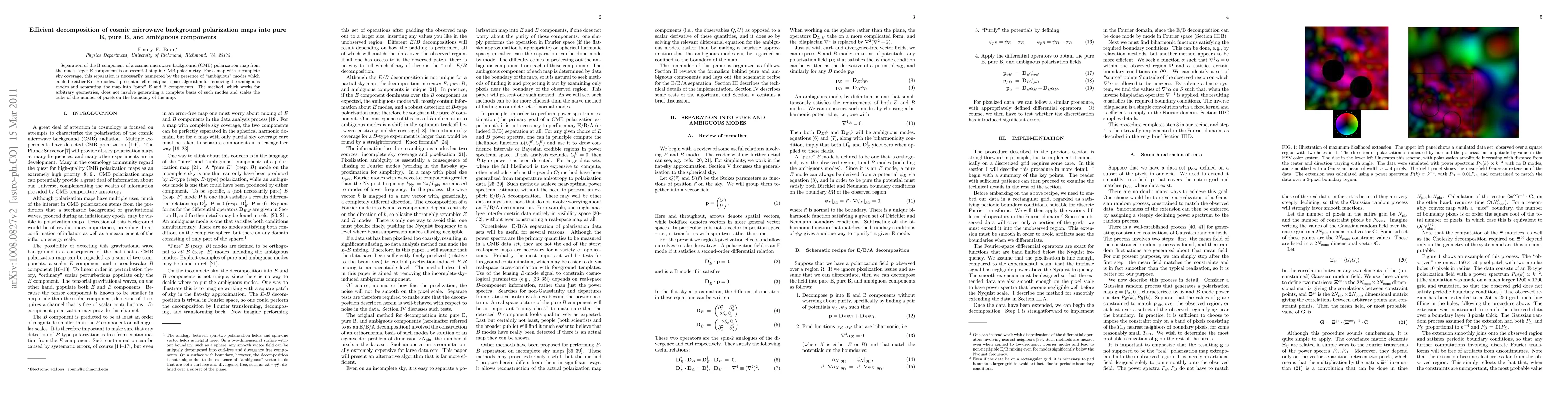 This paper introduces an efficient pixel-space algorithm to separate the E and B components of CMB polarization maps, addressing the challenge of ambiguous modes in incomplete sky coverage. The method scales cubically with the number of boundary pixels and does not require a complete basis of modes.