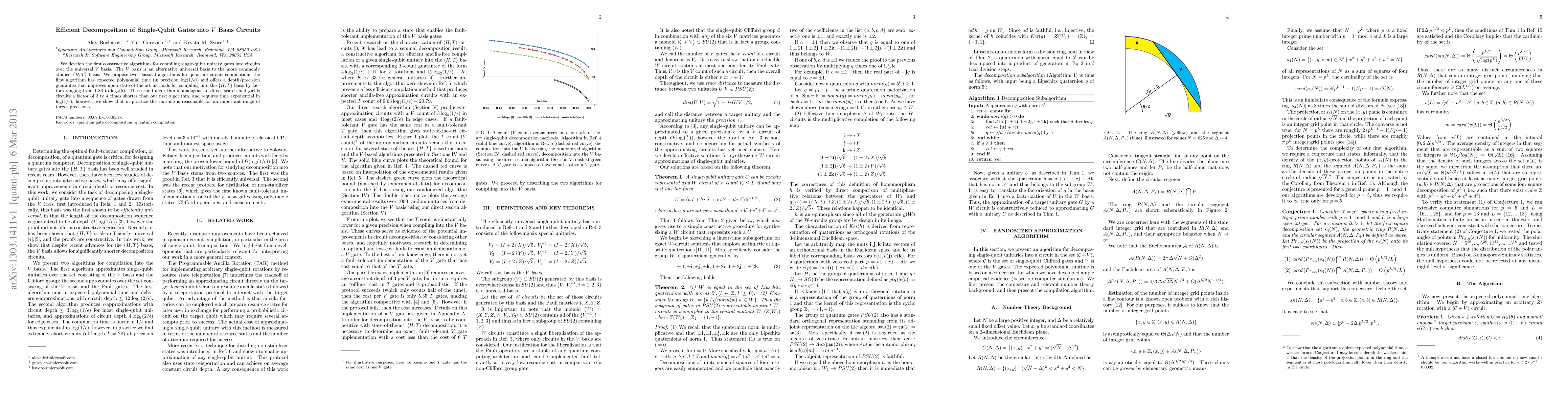 Researchers developed efficient algorithms to compile single-qubit gates into V basis circuits, offering improved depth/precision guarantees over existing methods. The new approaches result in shorter circuit lengths for practical target precisions.