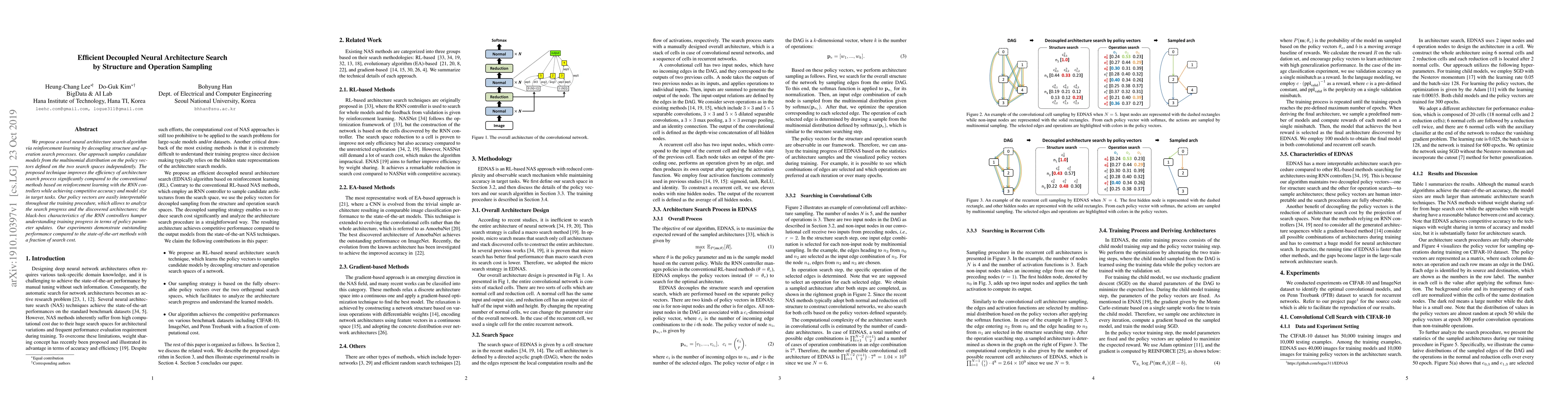 We propose a novel neural architecture search algorithm via reinforcement learning by decoupling structure and operation search processes. Our approach samples candidate models from the multinomial distribution on the policy vectors defined on the two search spaces independently. The proposed technique improves the efficiency of architecture search process significantly compared to the conventional methods based on reinforcement learning with the RNN controllers while achieving competitive accuracy and model size in target tasks. Our policy vectors are easily interpretable throughout the training procedure, which allows to analyze the search progress and the discovered architectures; the black-box characteristics of the RNN controllers hamper understanding training progress in terms of policy parameter updates. Our experiments demonstrate outstanding performance compared to the state-of-the-art methods with a fraction of search cost.