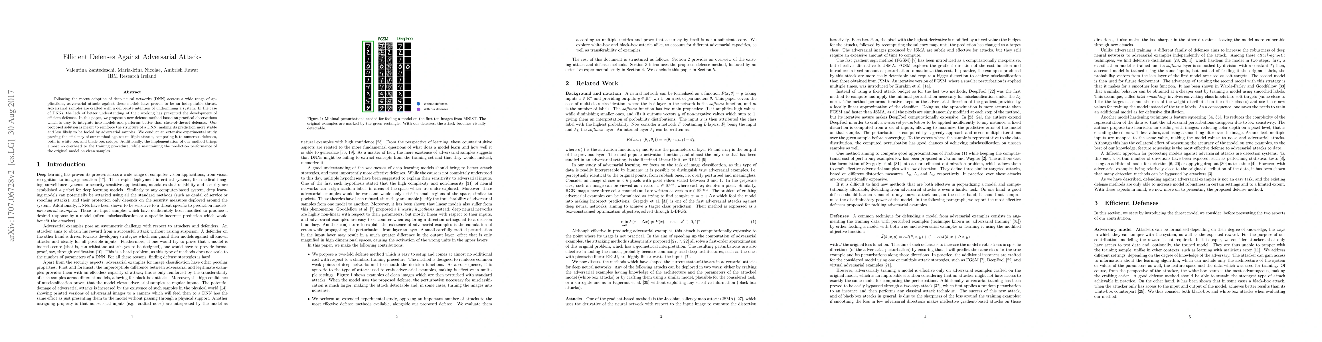 Following the recent adoption of deep neural networks (DNN) accross a wide range of applications, adversarial attacks against these models have proven to be an indisputable threat. Adversarial samples are crafted with a deliberate intention of undermining a system. In the case of DNNs, the lack of better understanding of their working has prevented the development of efficient defenses. In this paper, we propose a new defense method based on practical observations which is easy to integrate into models and performs better than state-of-the-art defenses. Our proposed solution is meant to reinforce the structure of a DNN, making its prediction more stable and less likely to be fooled by adversarial samples. We conduct an extensive experimental study proving the efficiency of our method against multiple attacks, comparing it to numerous defenses, both in white-box and black-box setups. Additionally, the implementation of our method brings almost no overhead to the training procedure, while maintaining the prediction performance of the original model on clean samples.