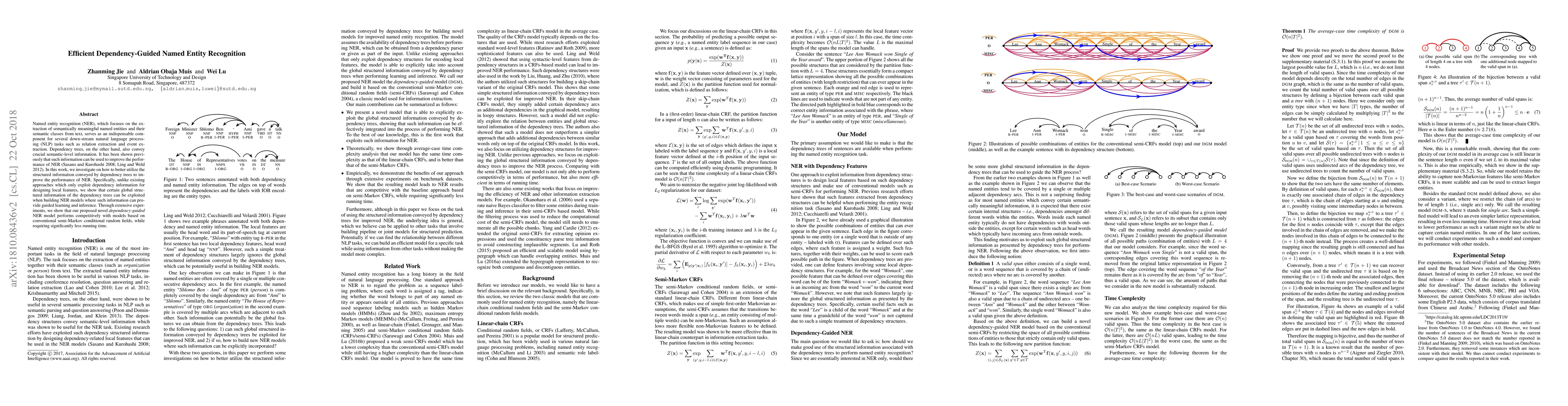 This paper proposes a novel dependency-guided approach for named entity recognition (NER) that leverages global structured information from dependency trees to enhance model performance and efficiency, outperforming traditional semi-Markov conditional random fields with faster execution times.
