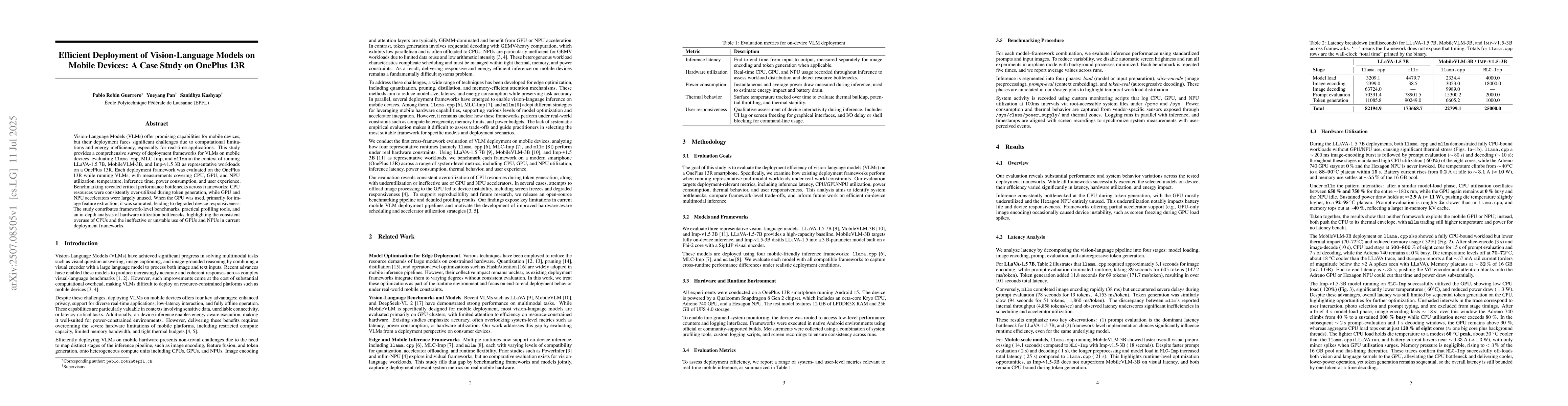 Vision-Language Models (VLMs) offer promising capabilities for mobile devices, but their deployment faces significant challenges due to computational limitations and energy inefficiency, especially for real-time applications. This study provides a comprehensive survey of deployment frameworks for VLMs on mobile devices, evaluating llama.cpp, MLC-Imp, and mllm in the context of running LLaVA-1.5 7B, MobileVLM-3B, and Imp-v1.5 3B as representative workloads on a OnePlus 13R. Each deployment framework was evaluated on the OnePlus 13R while running VLMs, with measurements covering CPU, GPU, and NPU utilization, temperature, inference time, power consumption, and user experience. Benchmarking revealed critical performance bottlenecks across frameworks: CPU resources were consistently over-utilized during token generation, while GPU and NPU accelerators were largely unused. When the GPU was used, primarily for image feature extraction, it was saturated, leading to degraded device responsiveness. The study contributes framework-level benchmarks, practical profiling tools, and an in-depth analysis of hardware utilization bottlenecks, highlighting the consistent overuse of CPUs and the ineffective or unstable use of GPUs and NPUs in current deployment frameworks.