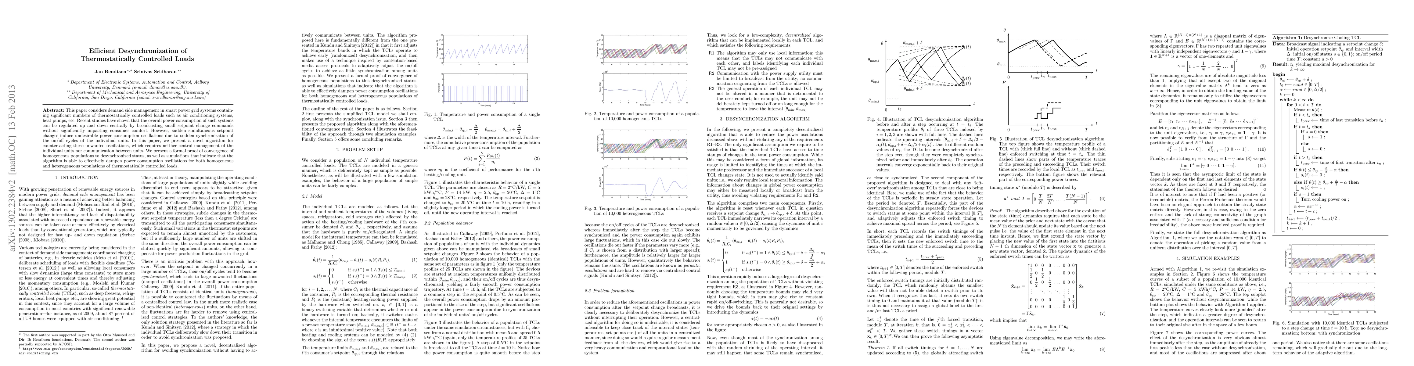 This paper proposes a novel algorithm to efficiently desynchronize thermostatically controlled loads in smart grids, mitigating power consumption oscillations without central management or inter-unit communication. The algorithm's convergence is proven formally, and simulations show its effectiveness in dampening oscillations in both homogeneous and heterogeneous populations.