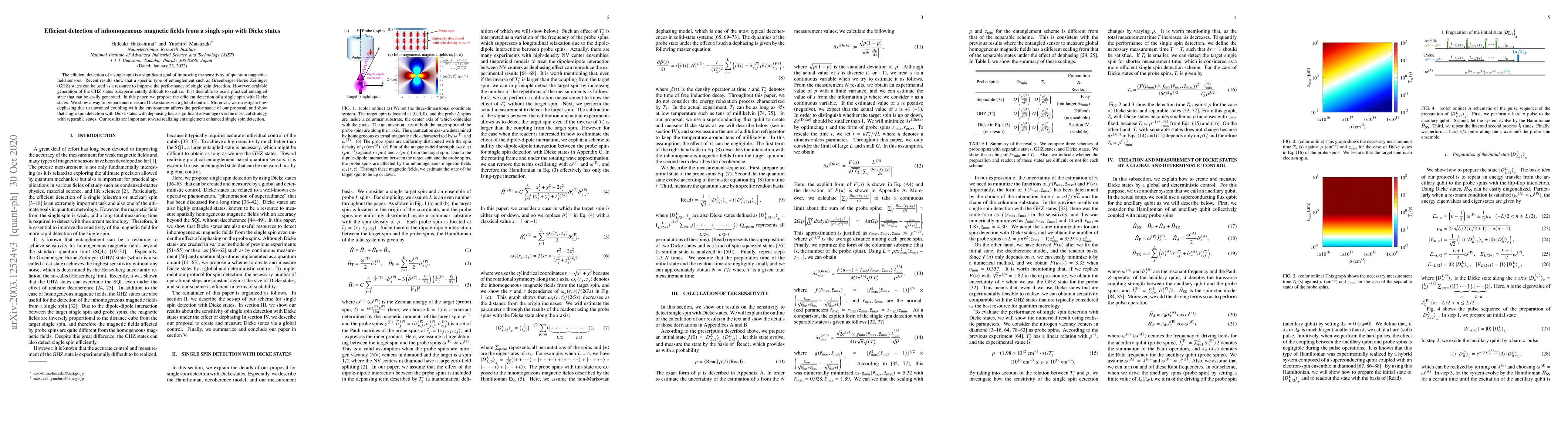 This paper proposes an efficient method for detecting a single spin using Dicke states, which are more easily generated than GHZ states, to enhance quantum magnetic-field sensors. It demonstrates the preparation and measurement of Dicke states and shows that despite dephasing, their use provides a significant advantage over classical methods.