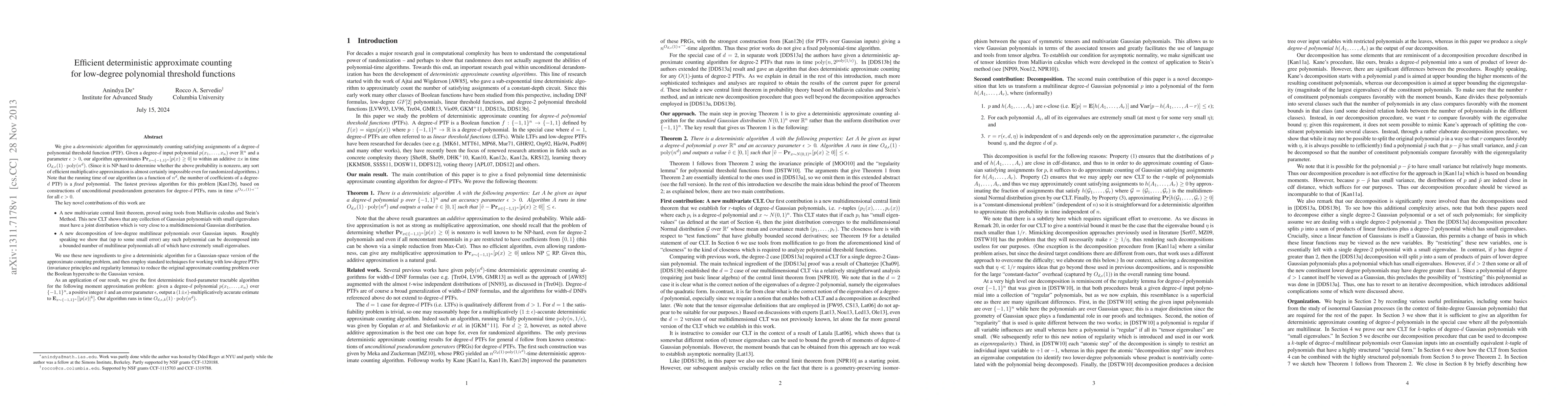 We give a deterministic algorithm for approximately counting satisfying assignments of a degree-$d$ polynomial threshold function (PTF). Given a degree-$d$ input polynomial $p(x_1,\dots,x_n)$ over $R^n$ and a parameter $\epsilon> 0$, our algorithm approximates $\Pr_{x \sim \{-1,1\}^n}[p(x) \geq 0]$ to within an additive $\pm \epsilon$ in time $O_{d,\epsilon}(1)\cdot \mathop{poly}(n^d)$. (Any sort of efficient multiplicative approximation is impossible even for randomized algorithms assuming $NP\not=RP$.) Note that the running time of our algorithm (as a function of $n^d$, the number of coefficients of a degree-$d$ PTF) is a \emph{fixed} polynomial. The fastest previous algorithm for this problem (due to Kane), based on constructions of unconditional pseudorandom generators for degree-$d$ PTFs, runs in time $n^{O_{d,c}(1) \cdot \epsilon^{-c}}$ for all $c > 0$. The key novel contributions of this work are: A new multivariate central limit theorem, proved using tools from Malliavin calculus and Stein's Method. This new CLT shows that any collection of Gaussian polynomials with small eigenvalues must have a joint distribution which is very close to a multidimensional Gaussian distribution. A new decomposition of low-degree multilinear polynomials over Gaussian inputs. Roughly speaking we show that (up to some small error) any such polynomial can be decomposed into a bounded number of multilinear polynomials all of which have extremely small eigenvalues. We use these new ingredients to give a deterministic algorithm for a Gaussian-space version of the approximate counting problem, and then employ standard techniques for working with low-degree PTFs (invariance principles and regularity lemmas) to reduce the original approximate counting problem over the Boolean hypercube to the Gaussian version.