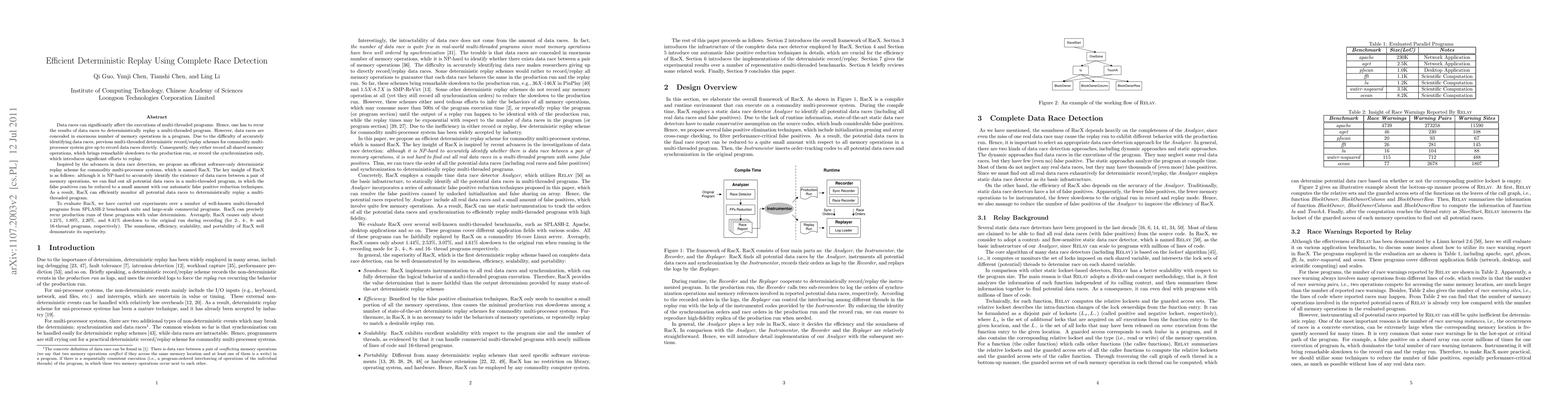 The paper proposes RacX, an efficient deterministic replay scheme for multi-threaded programs that identifies potential data races through complete race detection, reducing false positives and achieving precise determinism with minimal slowdown during recording. Experiments show RacX achieves value determinism with average slowdowns of 1.21% to 8.41% depending on the number of threads.