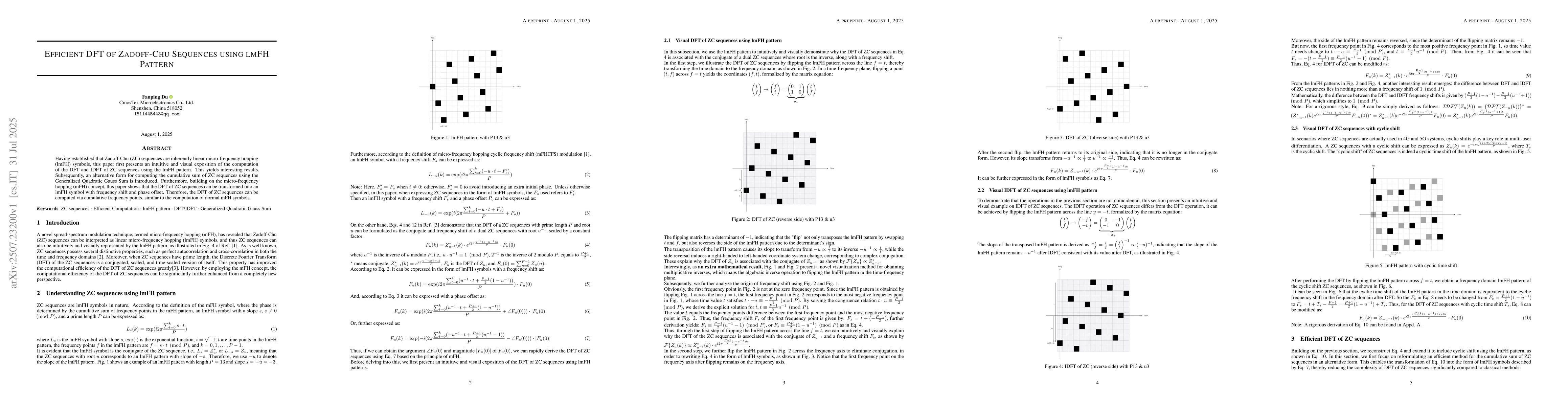 Having established that Zadoff-Chu (ZC) sequences are inherently linear micro-frequency hopping (lmFH) symbols, this paper first presents an intuitive and visual exposition of the computation of the DFT and IDFT of ZC sequences using the lmFH pattern. This yields interesting results. Subsequently, an alternative form for computing the cumulative sum of ZC sequences using the Generalized Quadratic Gauss Sum is introduced. Furthermore, building on the micro-frequency hopping (mFH) concept, this paper shows that the DFT of ZC sequences can be transformed into an lmFH symbol with frequency shift and phase offset. Therefore, the DFT of ZC sequences can be computed via cumulative frequency points, similar to the computation of normal mFH symbols.