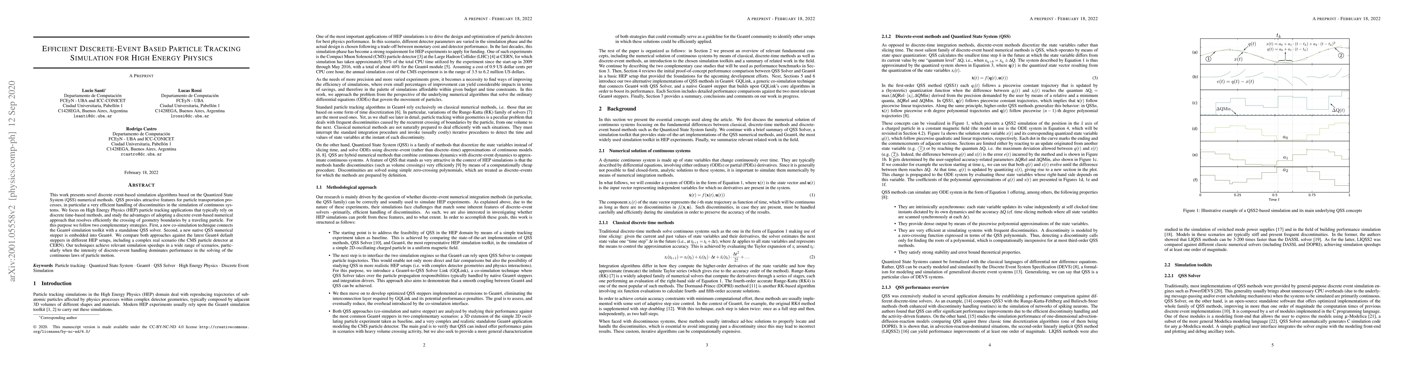 This paper introduces discrete event-based simulation algorithms using Quantized State System (QSS) methods for high-energy physics particle tracking, achieving significant speedups by efficiently handling discontinuities. Both co-simulation with Geant4 and a native QSS stepper in Geant4 are evaluated, showing improved performance in scenarios dominated by discrete-event handling.