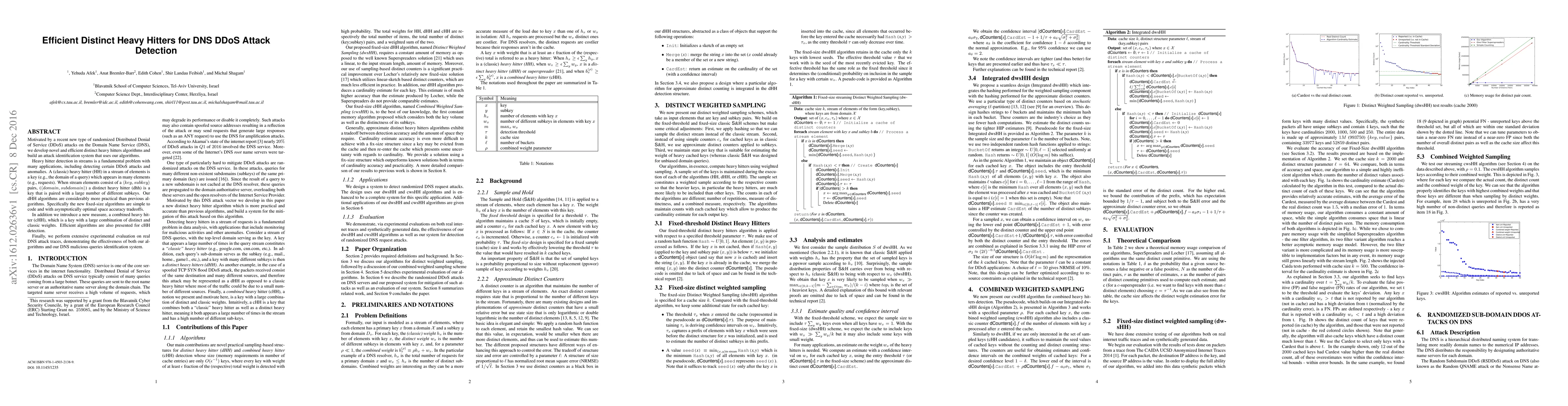 (DDoS) attacks on the Domain Name Service (DNS), we develop novel and efficient