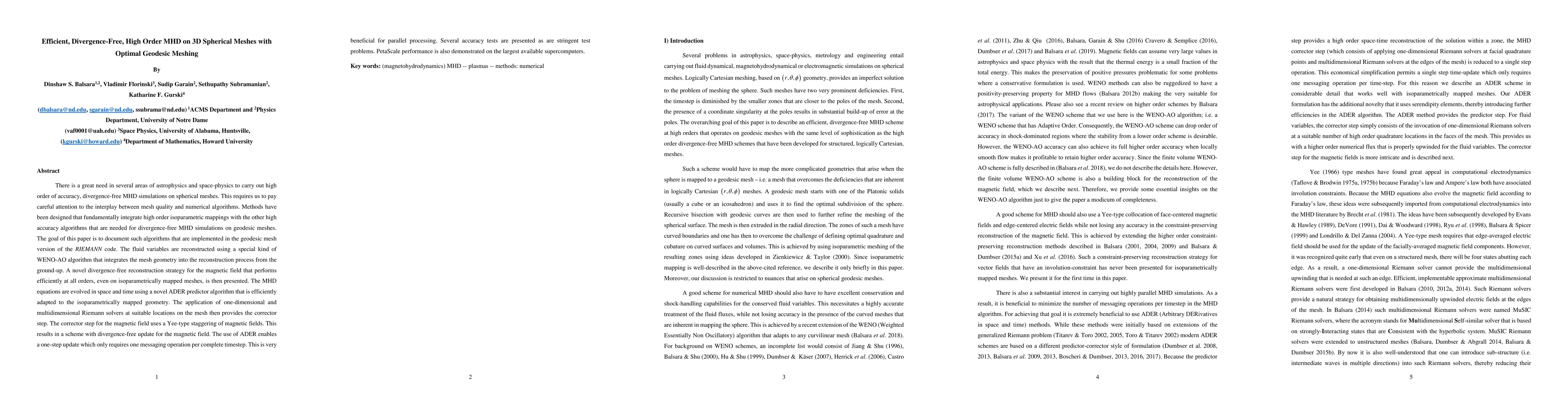 The research presents an efficient, divergence-free, high-order MHD method on 3D spherical meshes using optimal geodesic meshing, integrating high-order isoparametric mappings with necessary high-accuracy algorithms for divergence-free MHD simulations.