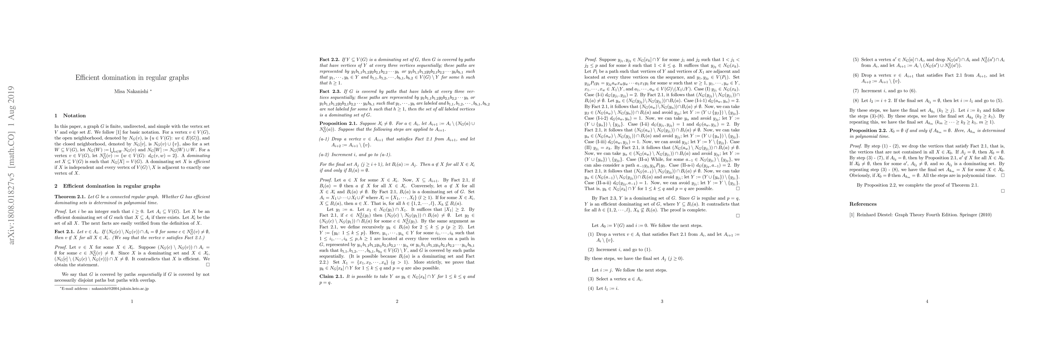 The paper presents a polynomial-time algorithm for determining the existence of efficient dominating sets in connected regular graphs, along with essential facts and propositions that ensure the algorithm's correctness.