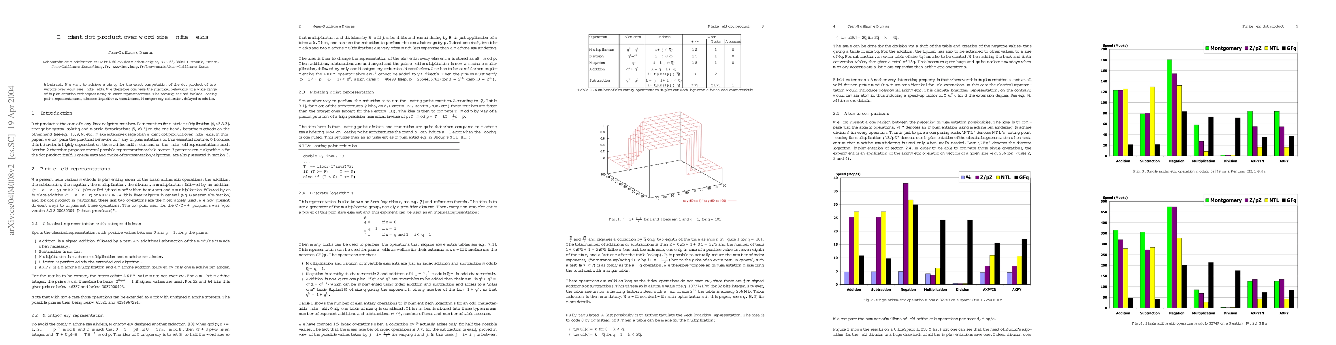 We want to achieve efficiency for the exact computation of the dot product of two vectors over word-size finite fields. We therefore compare the practical behaviors of a wide range of implementation techniques using different representations. The techniques used include oating point representations, discrete logarithms, tabulations, Montgomery reduction, delayed modulus.