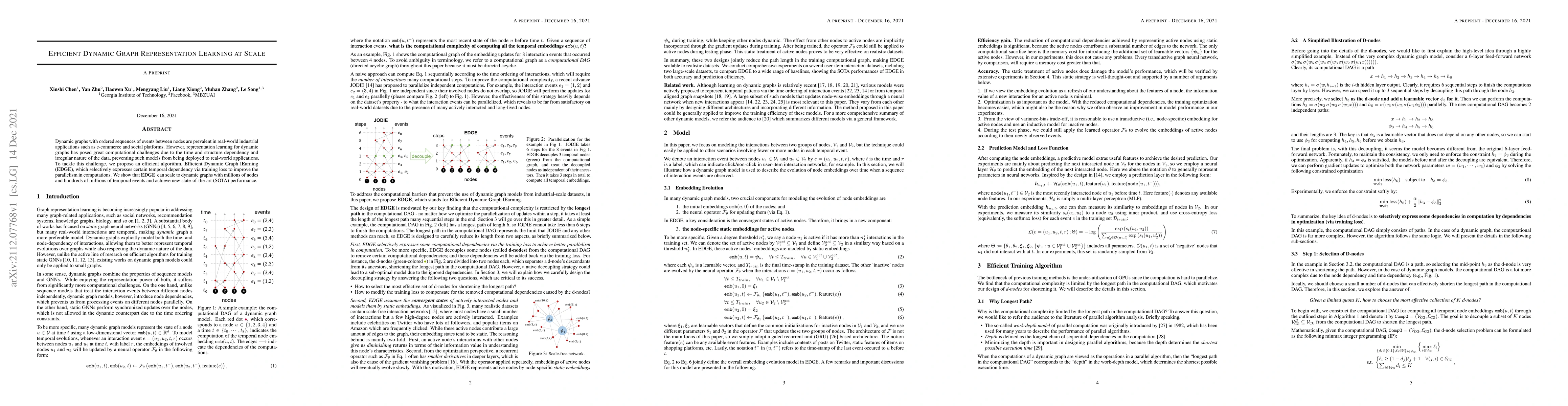 The paper proposes EDGE, an efficient algorithm for dynamic graph representation learning that selectively expresses temporal dependencies, significantly improving computational parallelism. EDGE scales to large dynamic graphs and achieves state-of-the-art performance, addressing computational challenges in real-world applications.