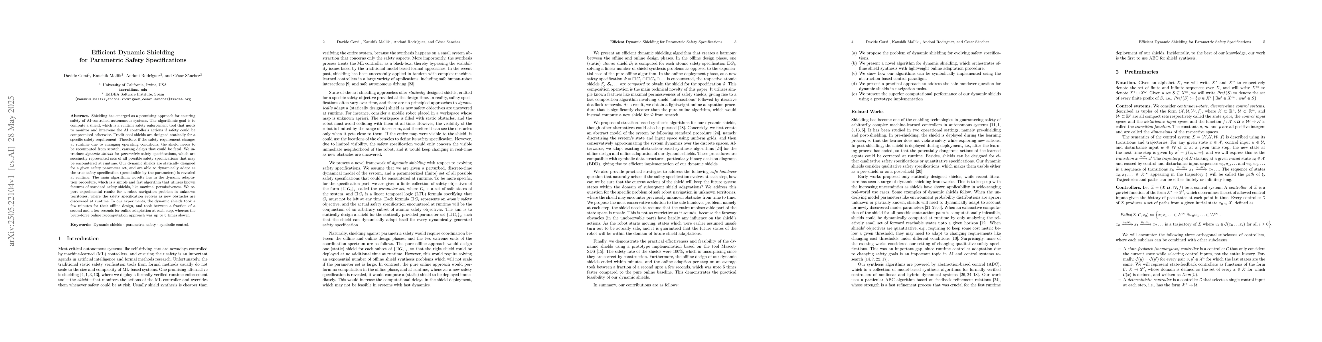 The paper introduces dynamic shields for parametric safety specifications, designed statically for a given set of safety parameters that adapt at runtime as the true safety specification is revealed.