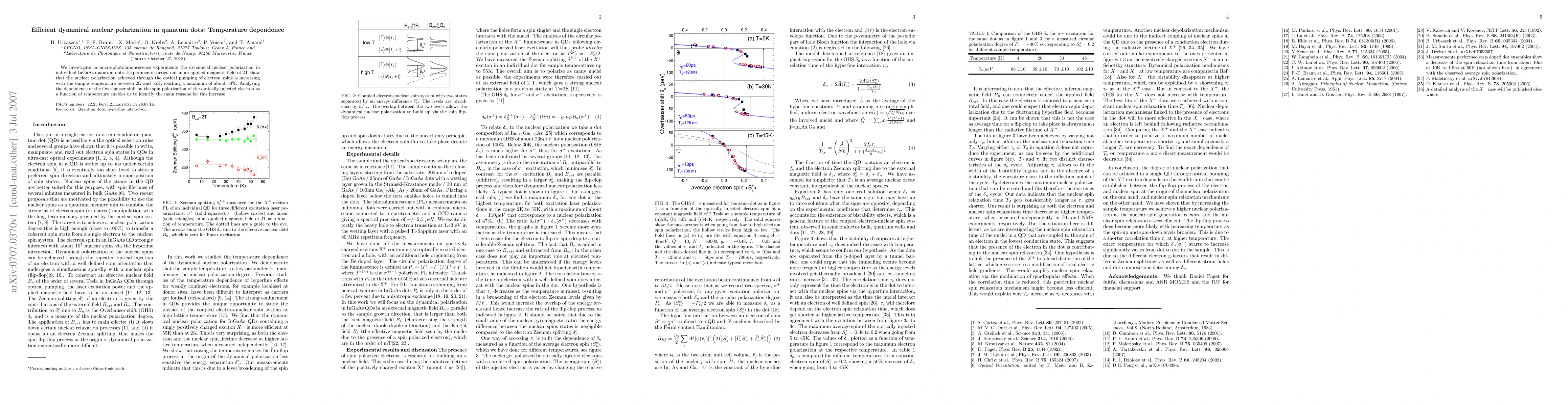This study investigates the temperature dependence of dynamical nuclear polarization in InGaAs quantum dots using micro-photoluminescence experiments. The results show that nuclear polarization increases with temperature up to 55K, reaching a maximum of about 50%, revealing the underlying mechanisms through the Overhauser shift analysis.