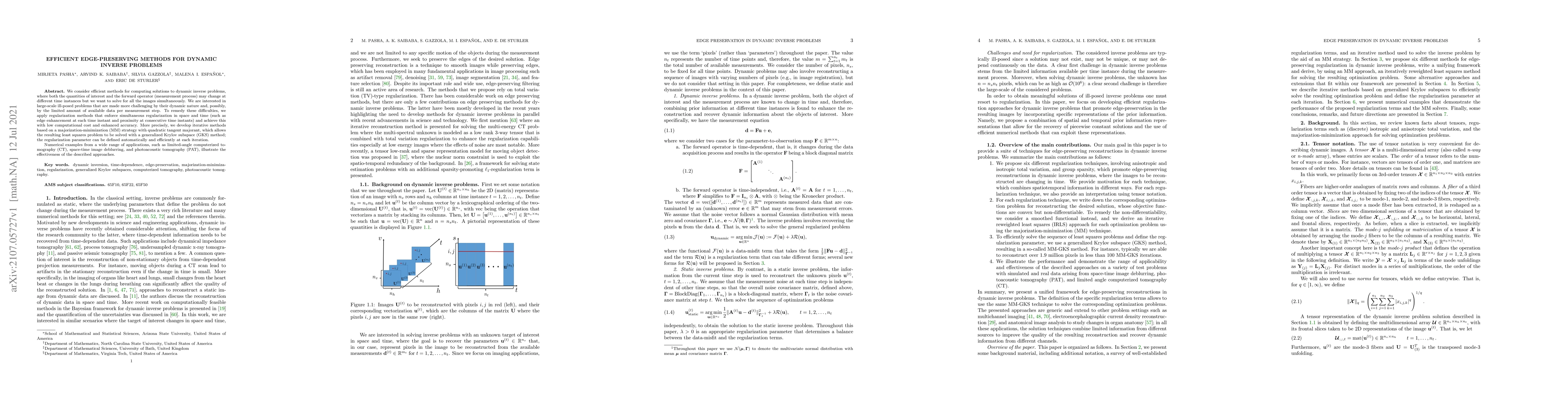 This paper proposes efficient edge-preserving methods for solving dynamic inverse problems, which involve simultaneous regularization in space and time with low computational cost.
