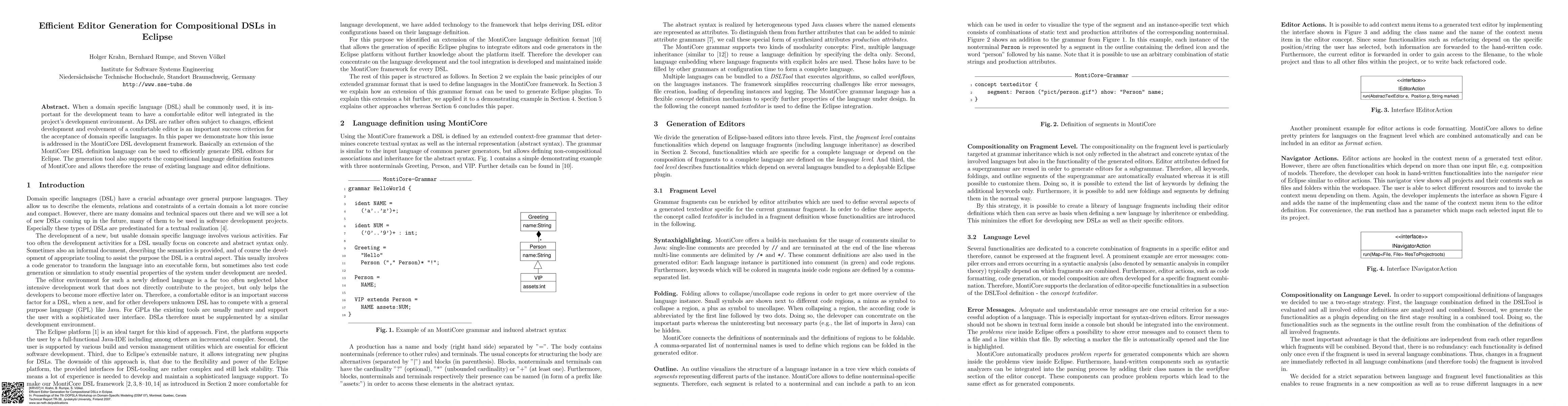 This paper presents a method for efficiently generating editors for compositional domain-specific languages (DSLs) within the Eclipse environment using the MontiCore DSL framework. The approach supports the reuse of existing language and editor definitions, facilitating the evolution of editors as DSLs change.