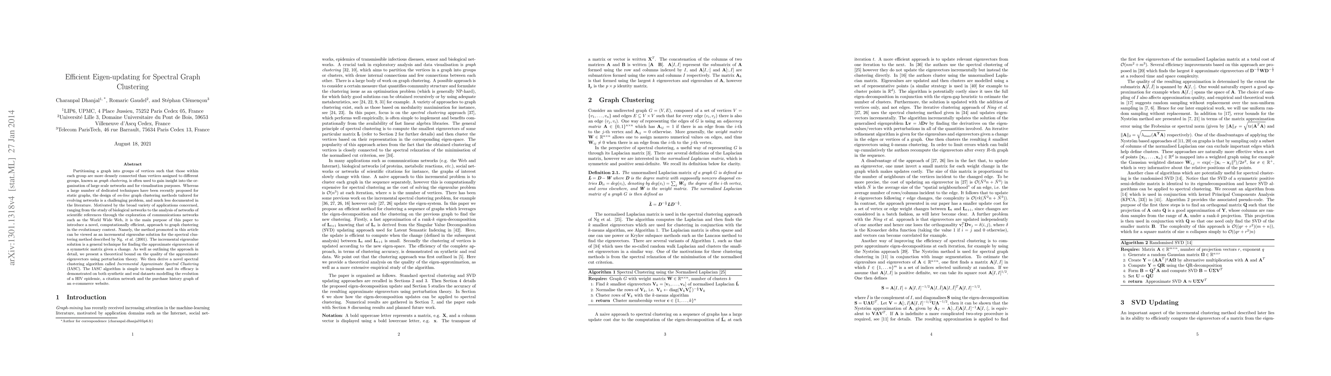 This paper introduces an efficient incremental eigenvalue solution for spectral graph clustering in evolving networks, termed Incremental Approximate Spectral Clustering (IASC). The method provides a computationally effective approach to updating eigenvectors in response to graph changes, demonstrated through synthetic and real-world datasets.