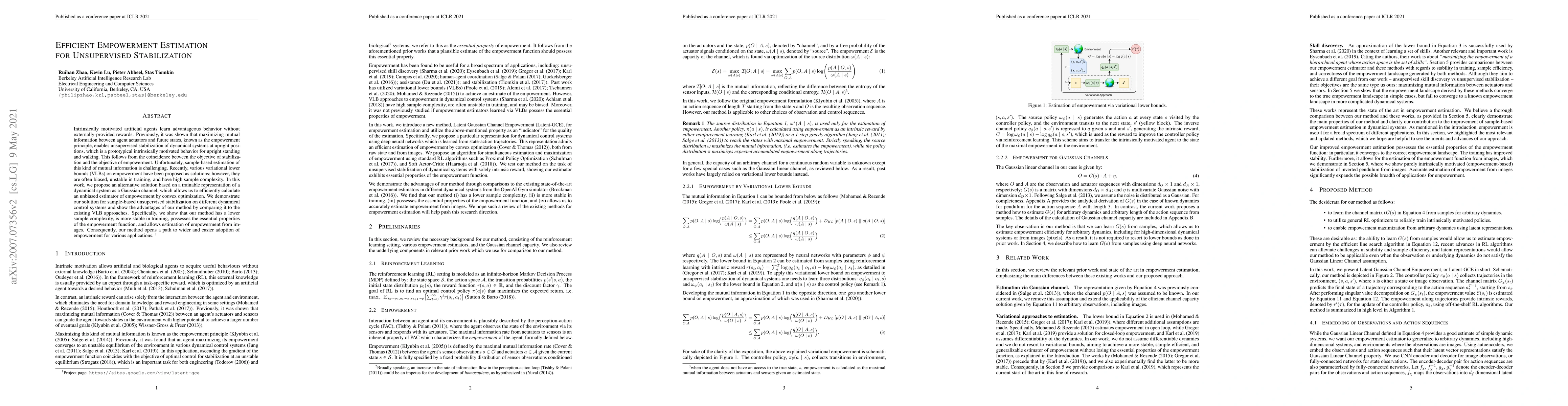 The research proposes a novel method for efficient empowerment estimation in dynamical systems using a trainable representation of the system as a Gaussian channel, allowing for unbiased empowerment estimation via convex optimization.