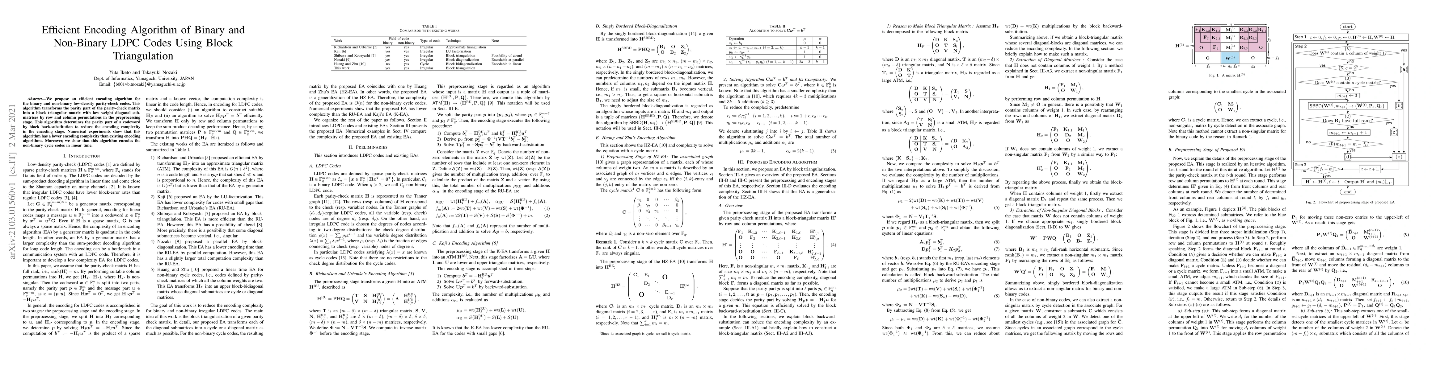 This paper introduces an efficient encoding algorithm for binary and non-binary low-density parity-check (LDPC) codes, utilizing block triangulation to reduce complexity. The algorithm employs preprocessing permutations and block back-substitution, demonstrating lower encoding complexity and linear time encoding for non-binary cycle codes.